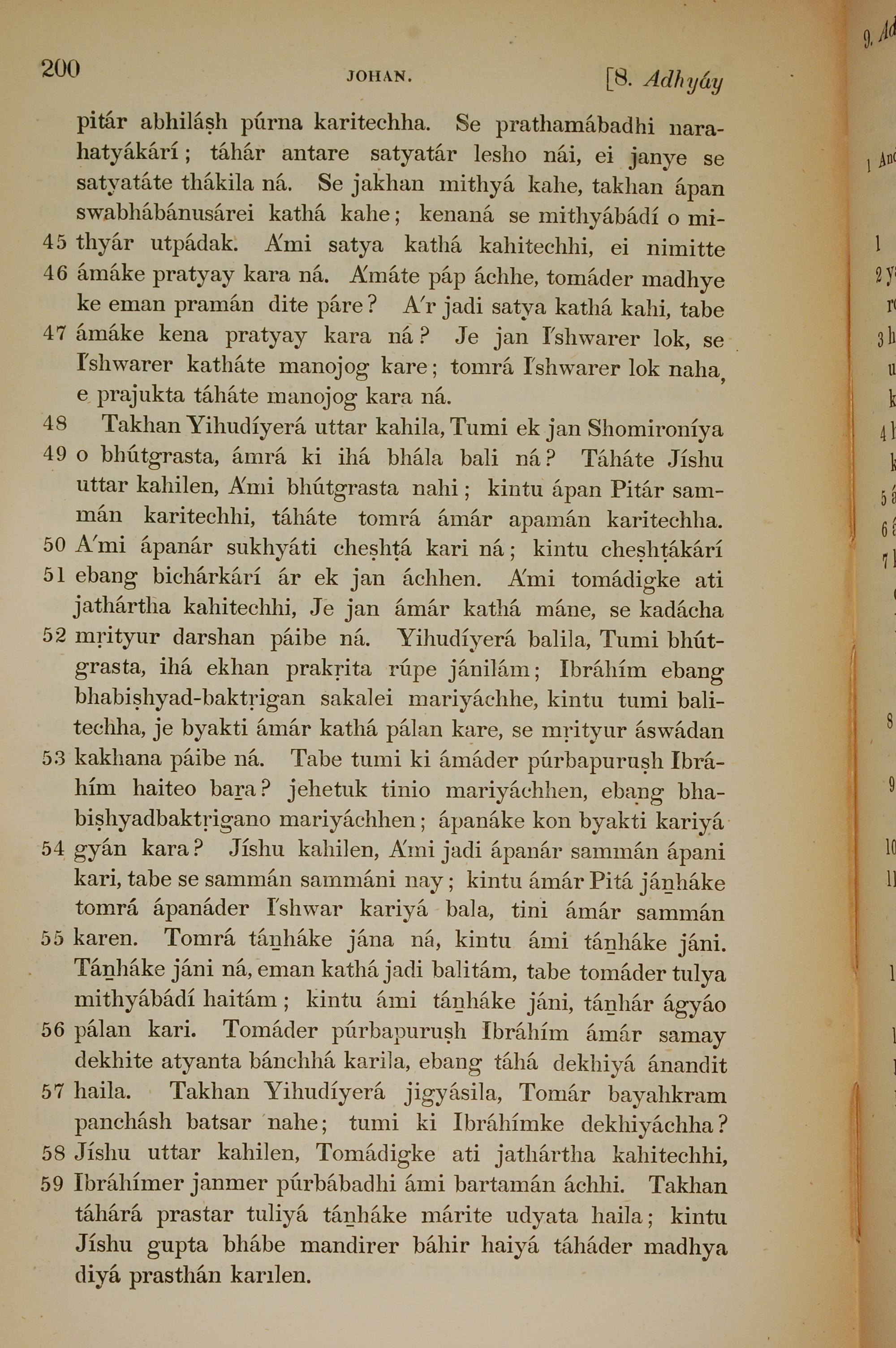 1839年孟加拉語新約全書 約翰福音 8 章 45 節到 8 章 59 節