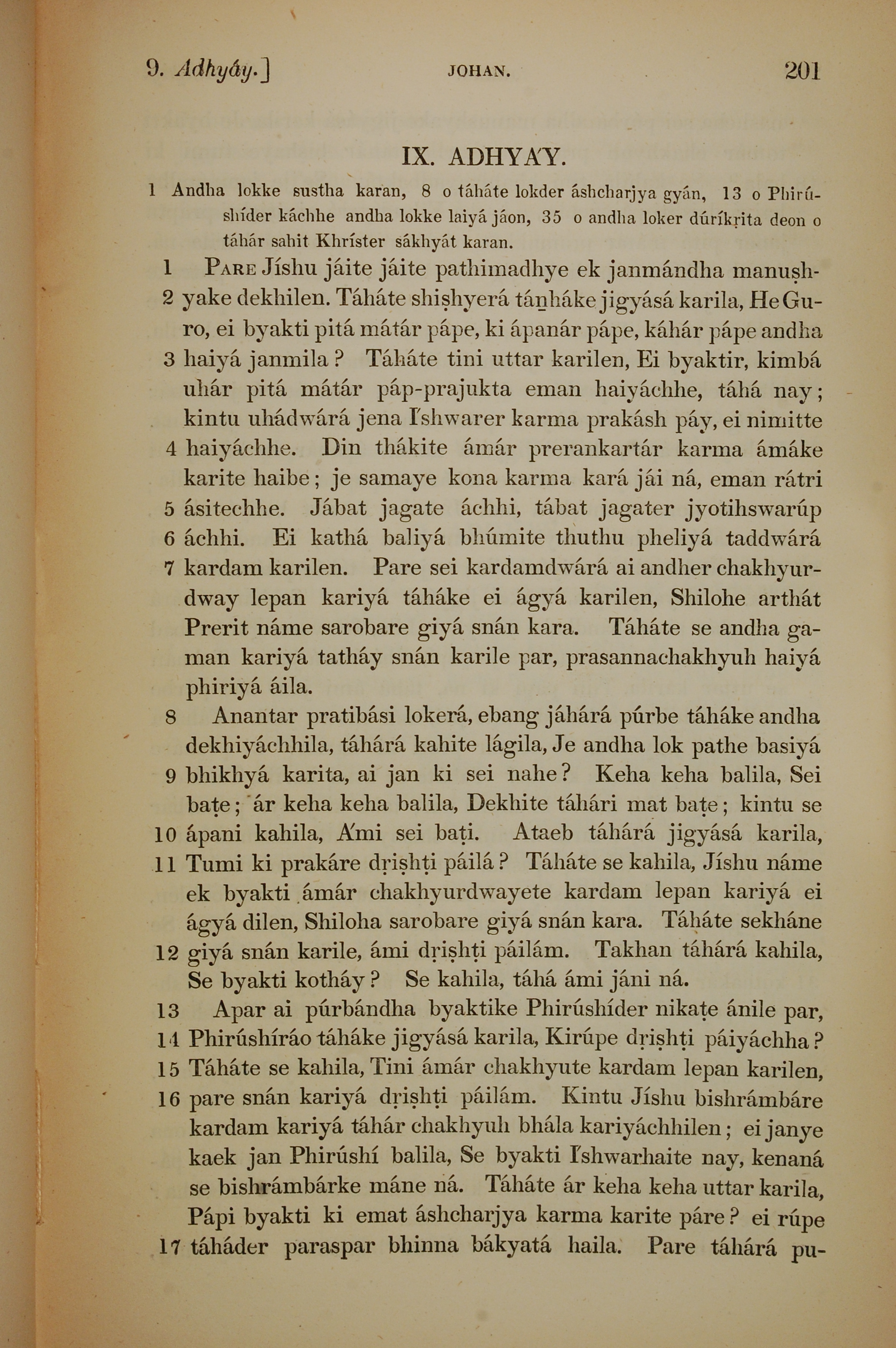 1839年孟加拉語新約全書 約翰福音 9 章 1 節到 9 章 17 節