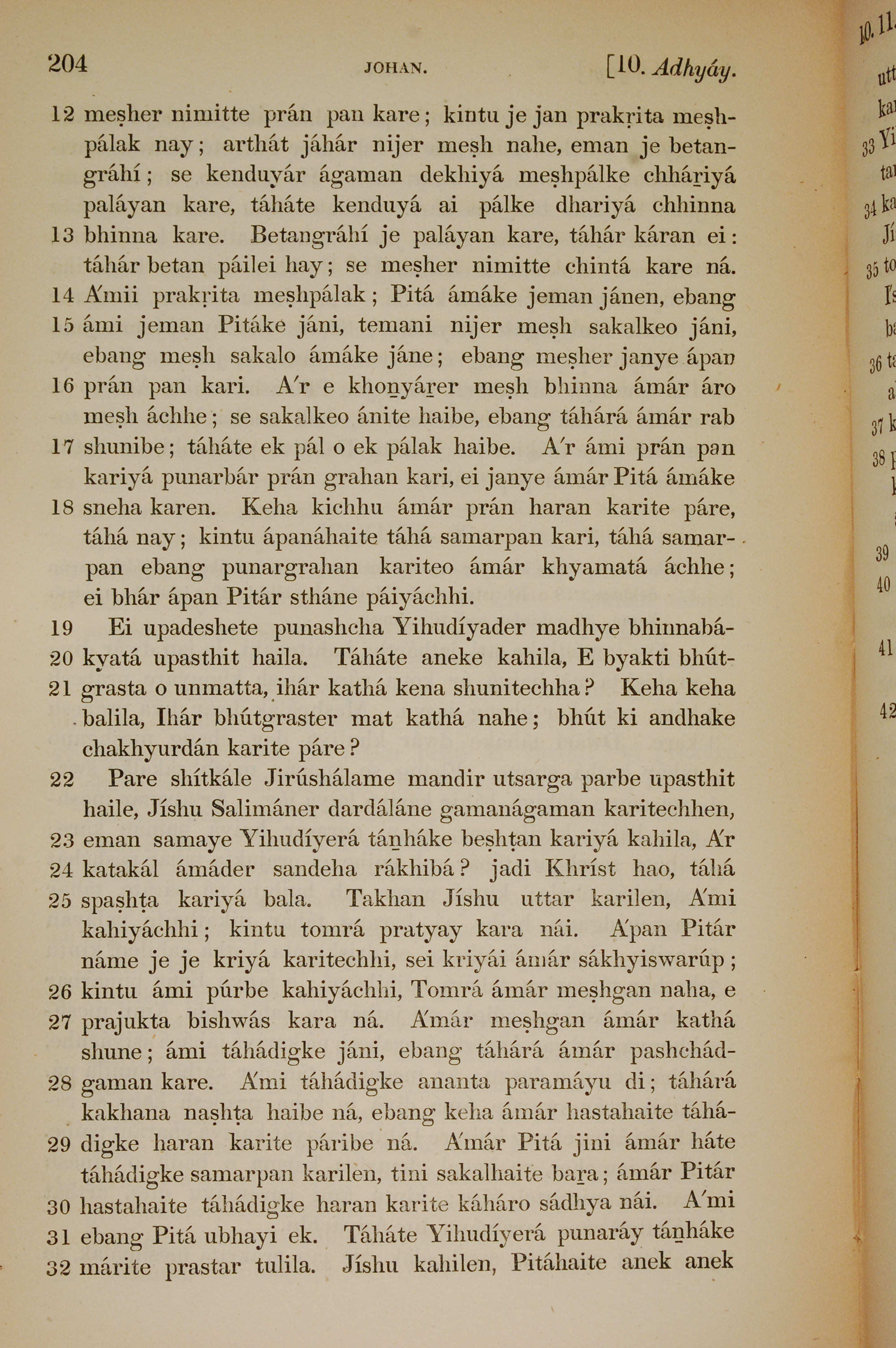 1839年孟加拉語新約全書 約翰福音 10 章 12 節到 10 章 32 節