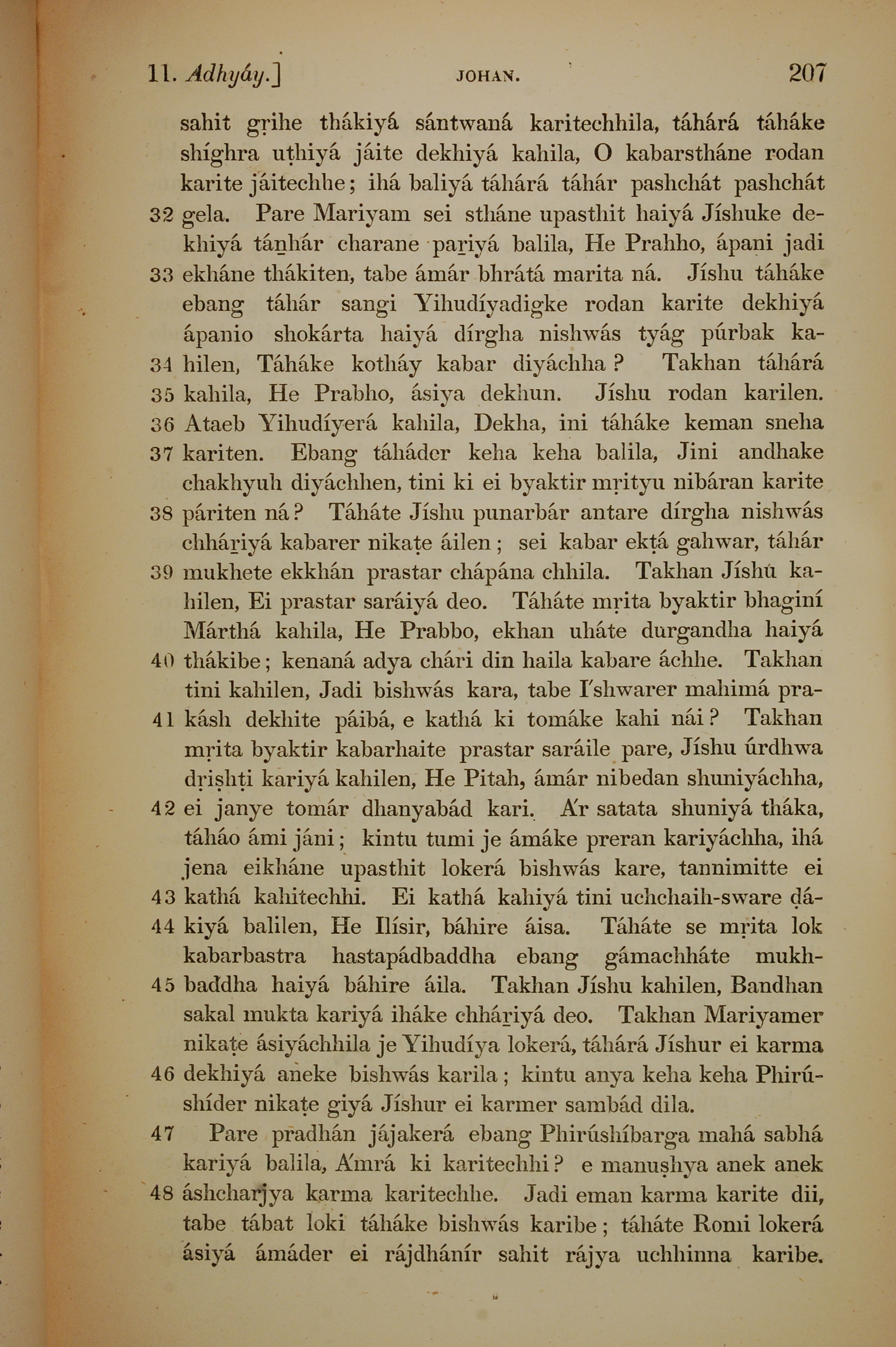 1839年孟加拉語新約全書 約翰福音 11 章 31 節到 11 章 48 節