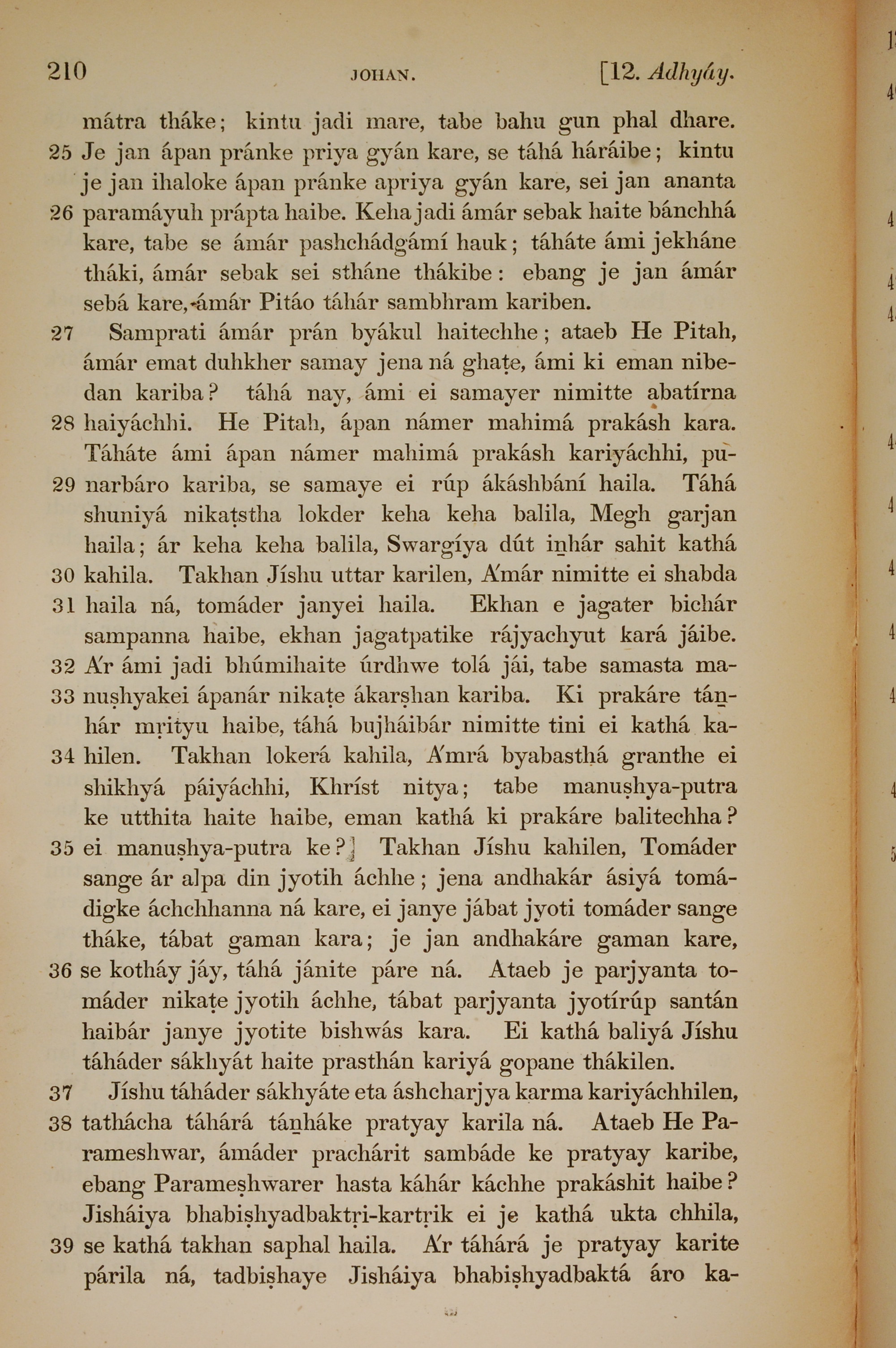 1839年孟加拉語新約全書 約翰福音 12 章 25 節到 12 章 39 節