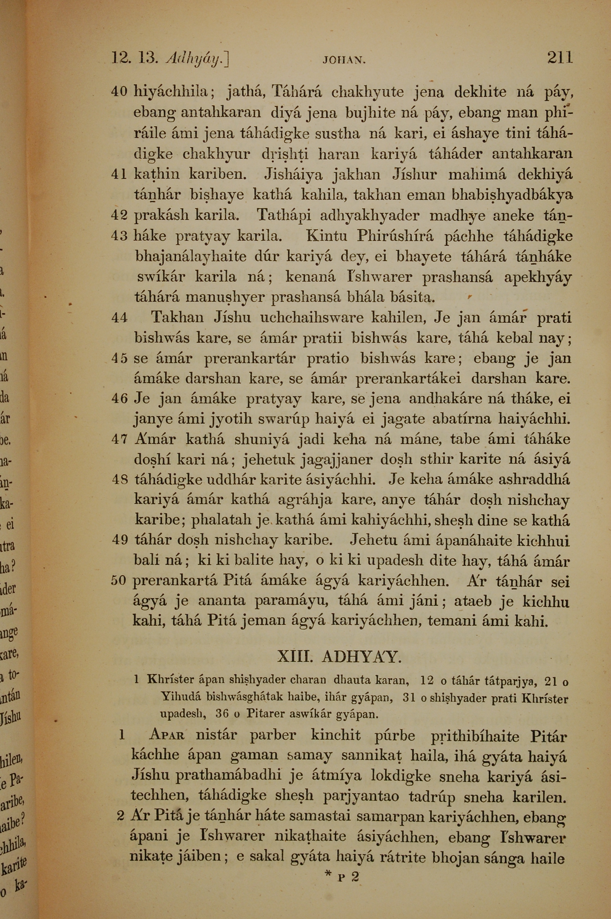1839年孟加拉語新約全書 約翰福音 12 章 40 節到 13 章 2 節