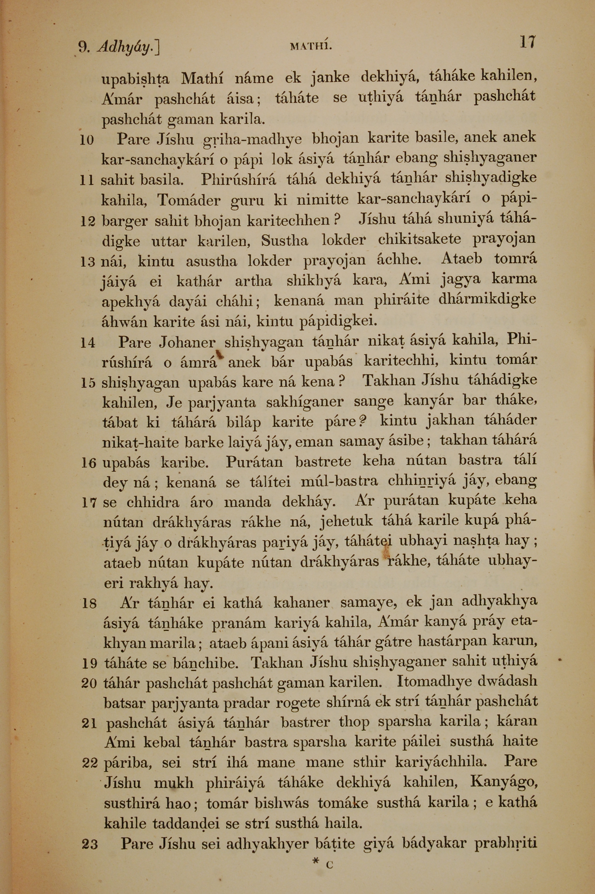 1839年孟加拉語新約全書 馬太福音 9 章 10 節到 9 章 23 節