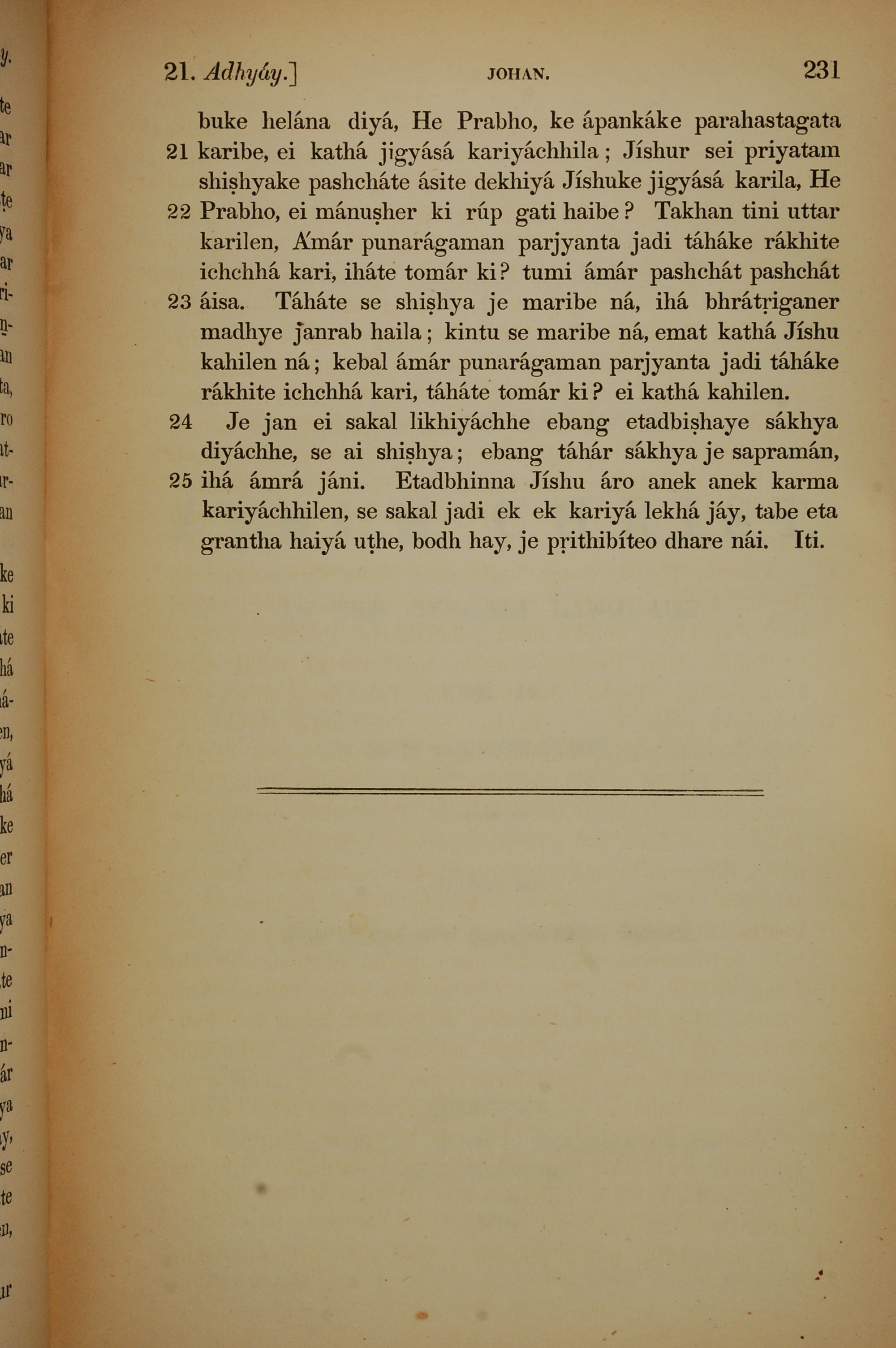1839年孟加拉語新約全書 約翰福音 21 章 21 節到 21 章 25 節