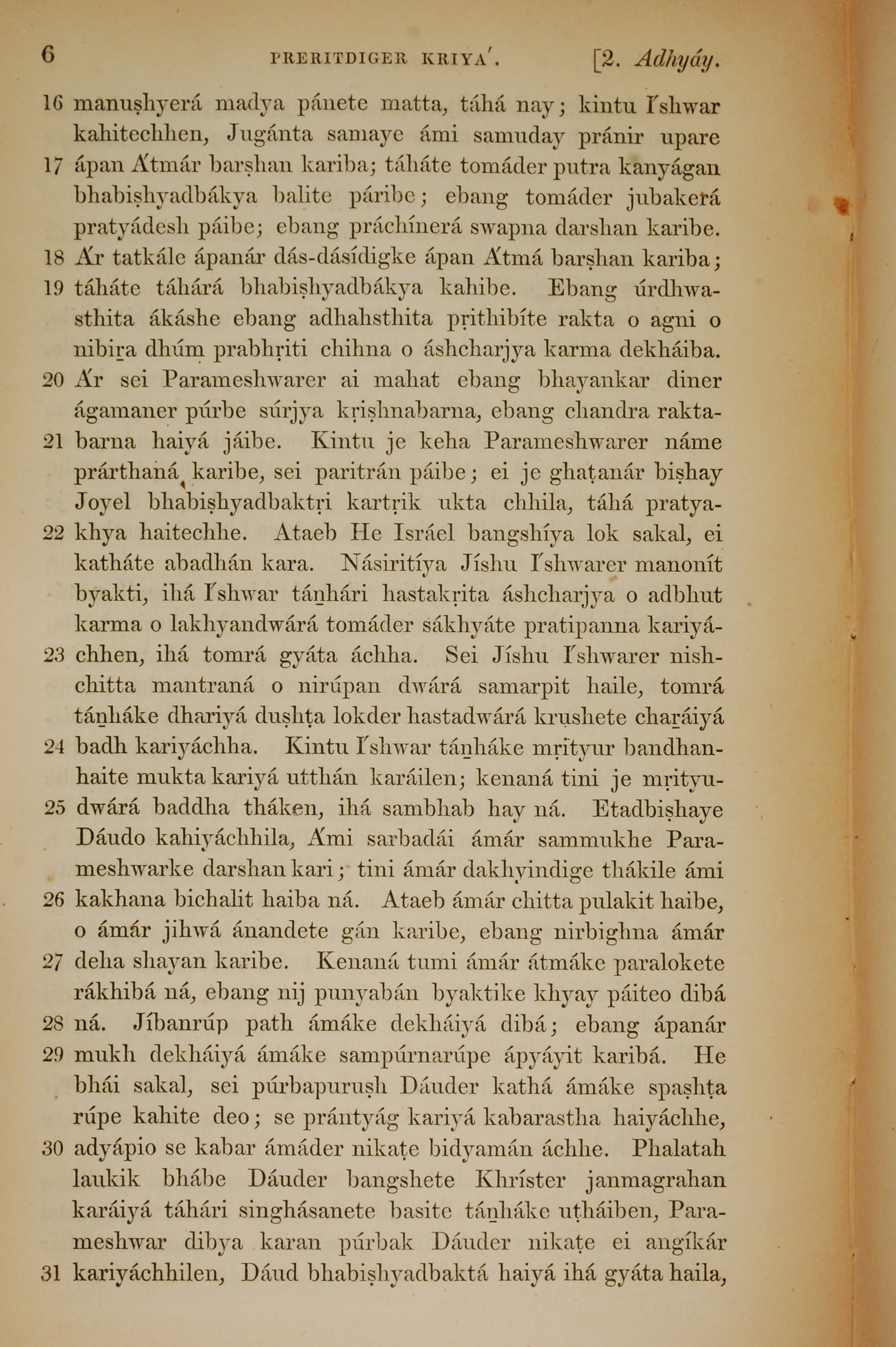 1839年孟加拉語新約全書 使徒行傳 2 章 16 節到 2 章 31 節