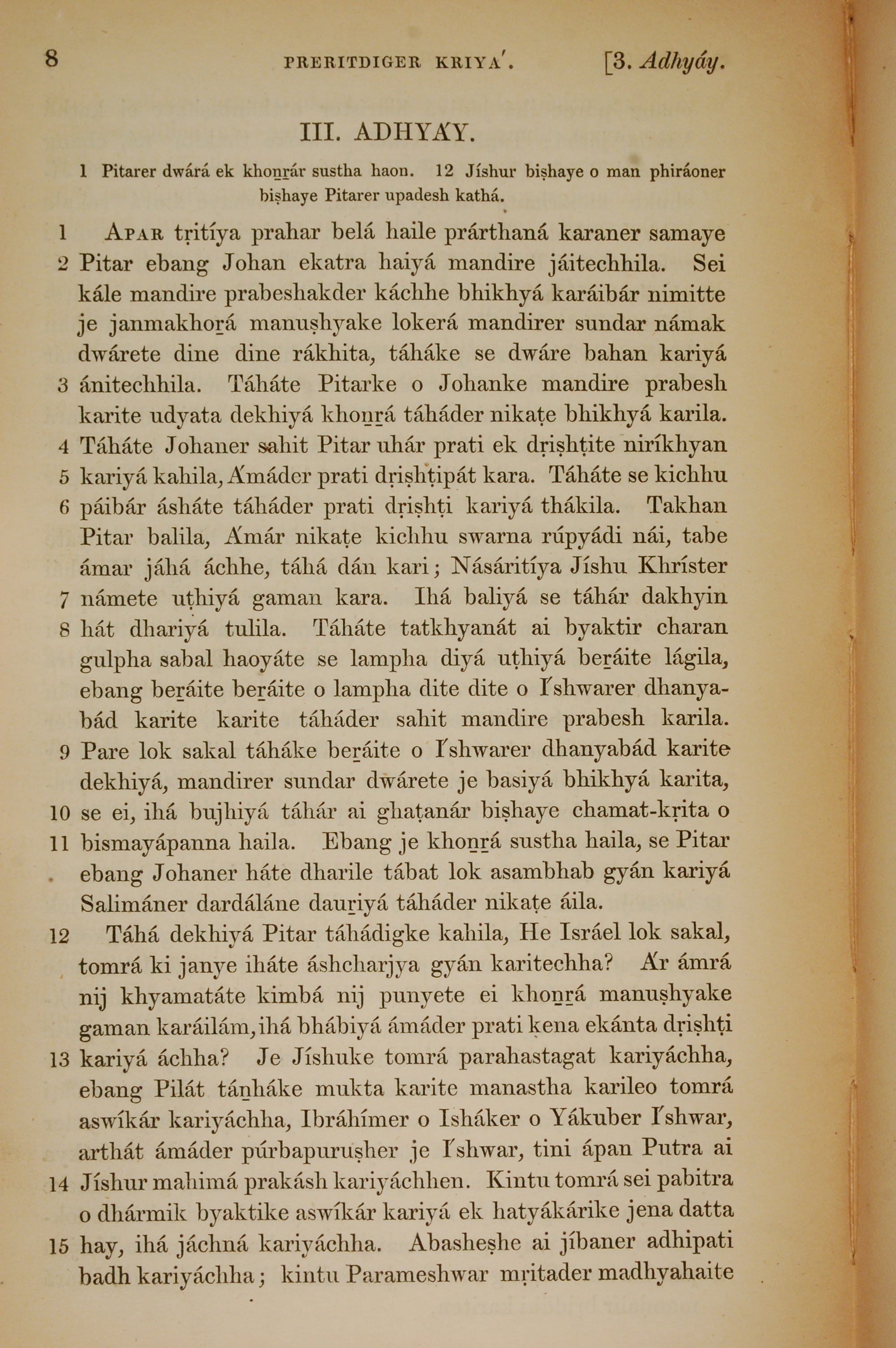 1839年孟加拉語新約全書 使徒行傳 3 章 1 節到 3 章 15 節