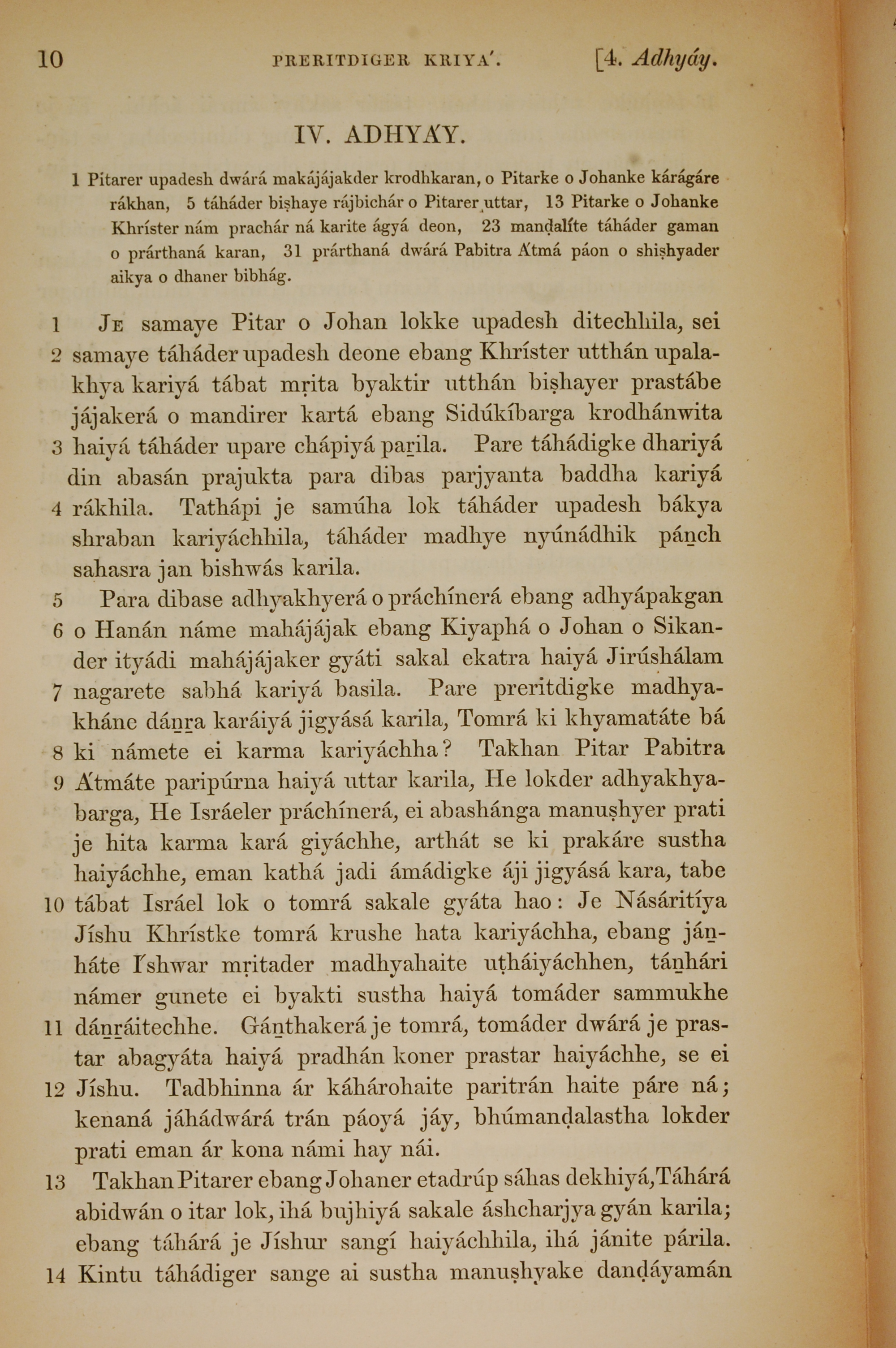 1839年孟加拉語新約全書 使徒行傳 4 章 1 節到 4 章 14 節