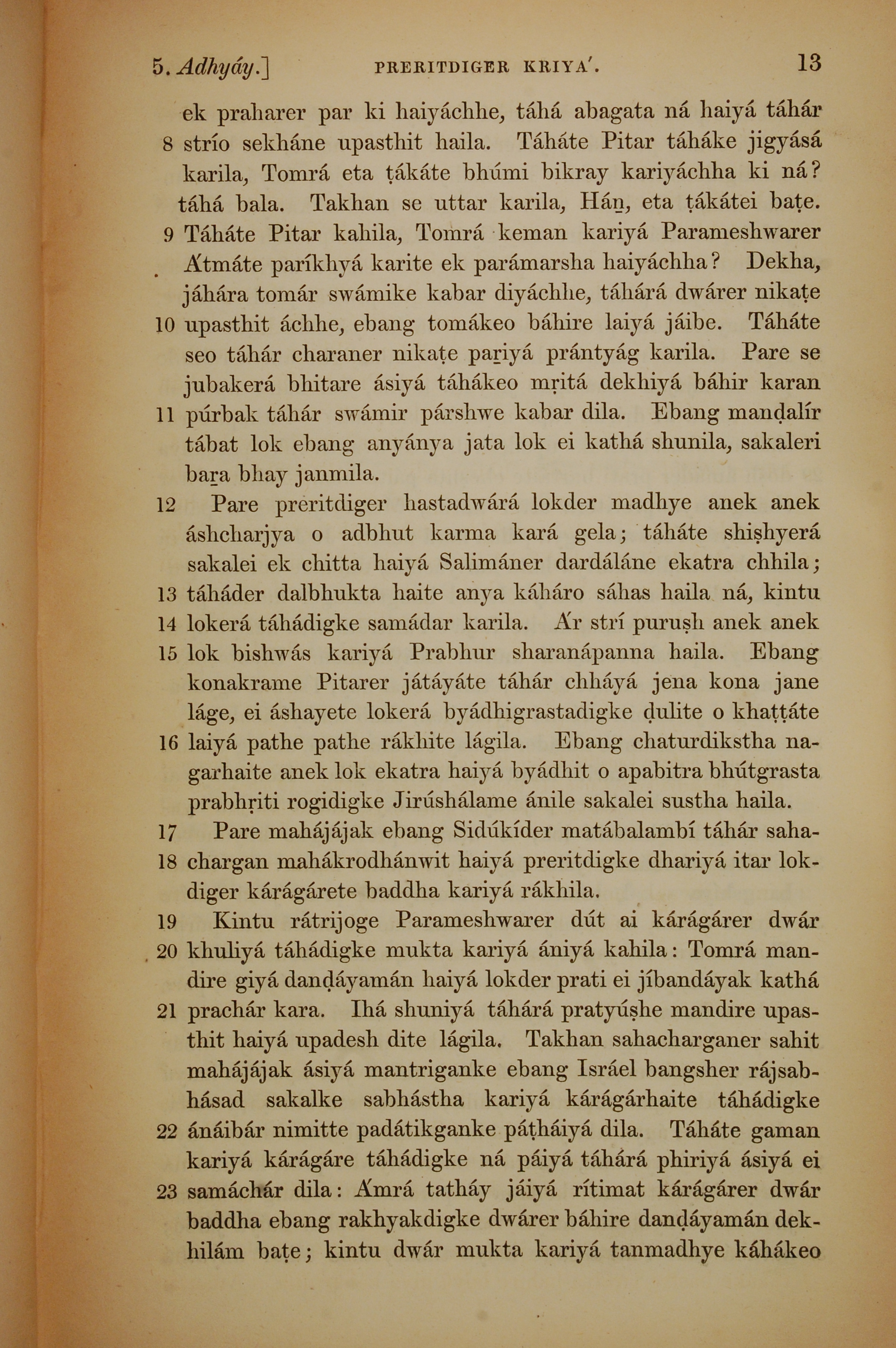 1839年孟加拉語新約全書 使徒行傳 5 章 8 節到 5 章 23 節