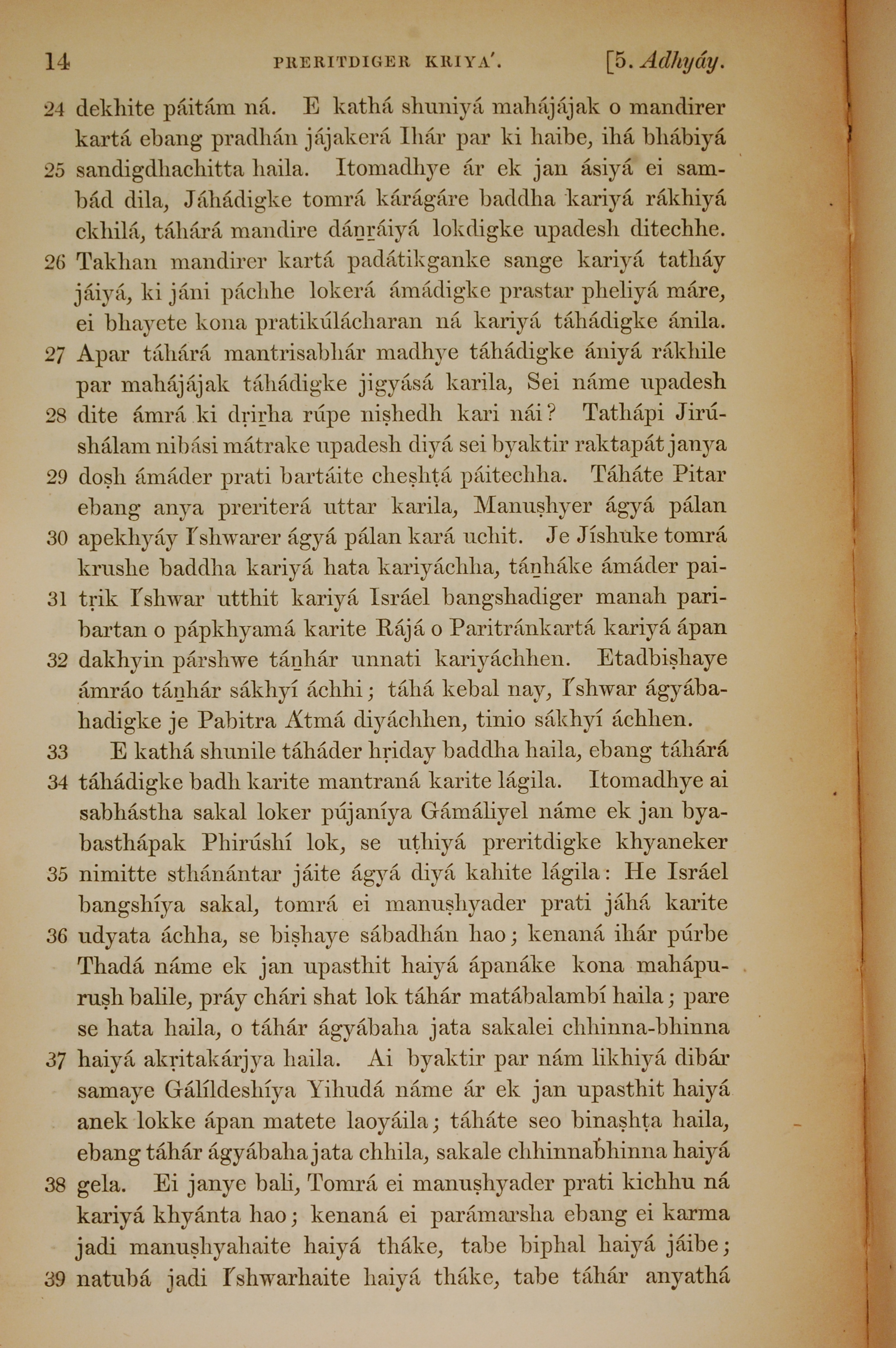 1839年孟加拉語新約全書 使徒行傳 5 章 24 節到 5 章 39 節