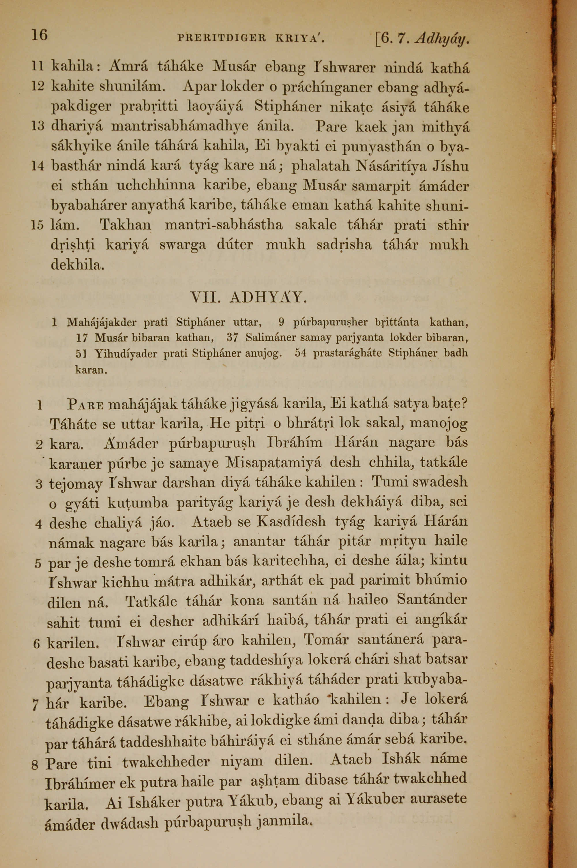 1839年孟加拉語新約全書 使徒行傳 6 章 11 節到 7 章 8 節