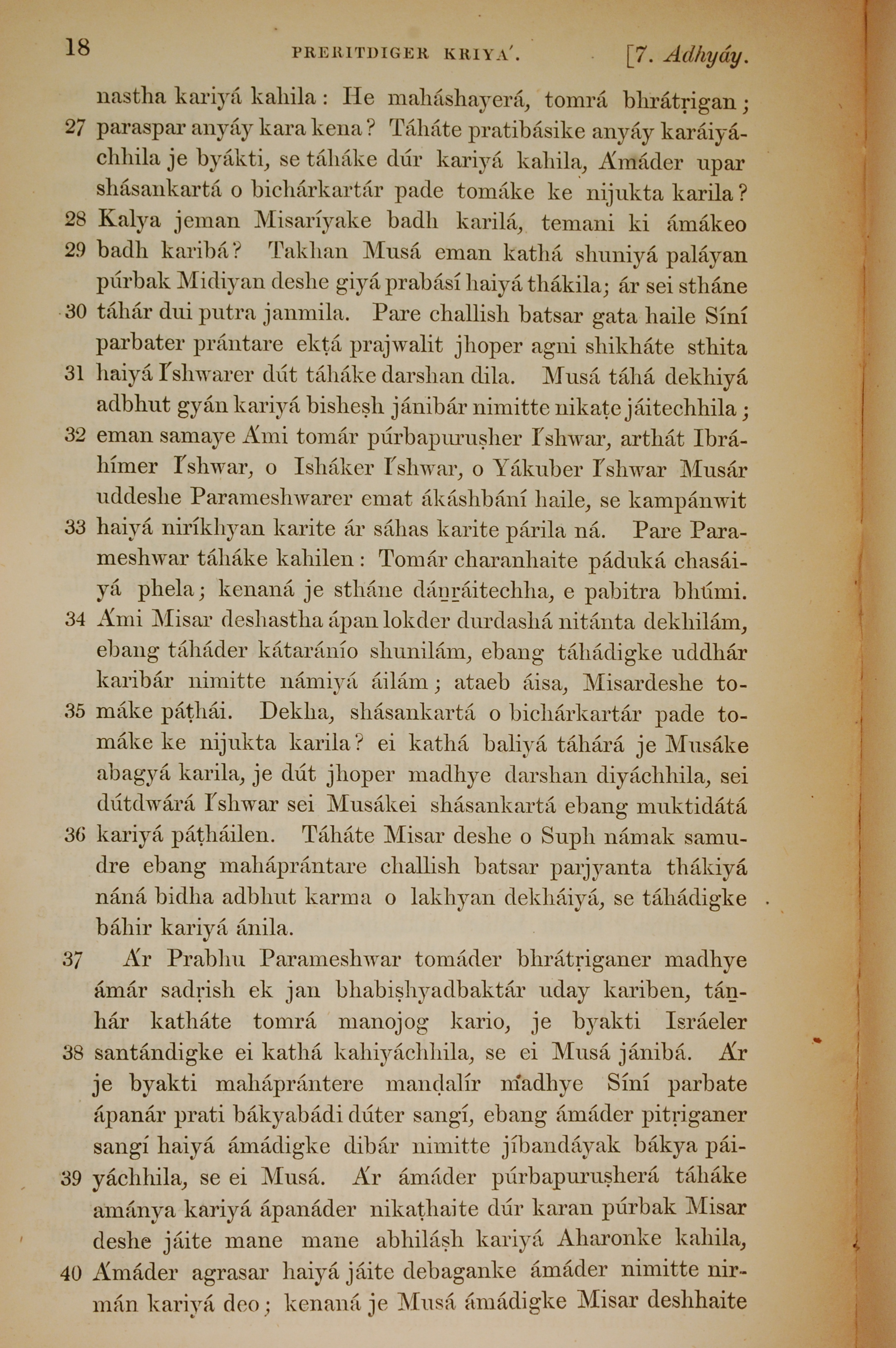 1839年孟加拉語新約全書 使徒行傳 7 章 27 節到 7 章 40 節