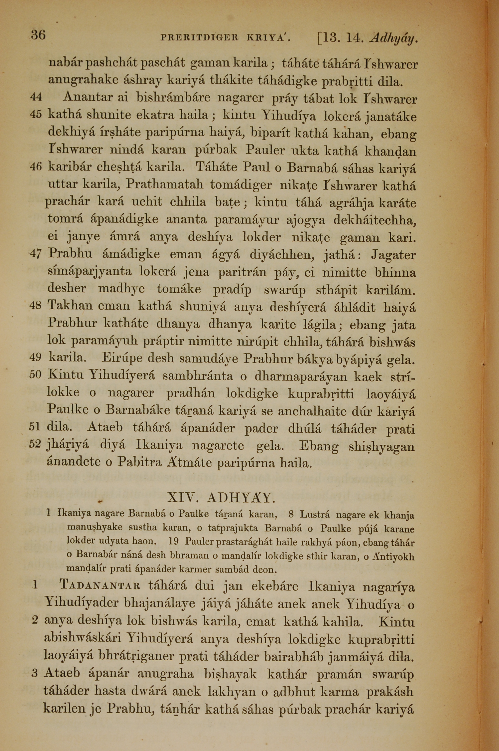 1839年孟加拉語新約全書 使徒行傳 13 章 44 節到 14 章 3 節