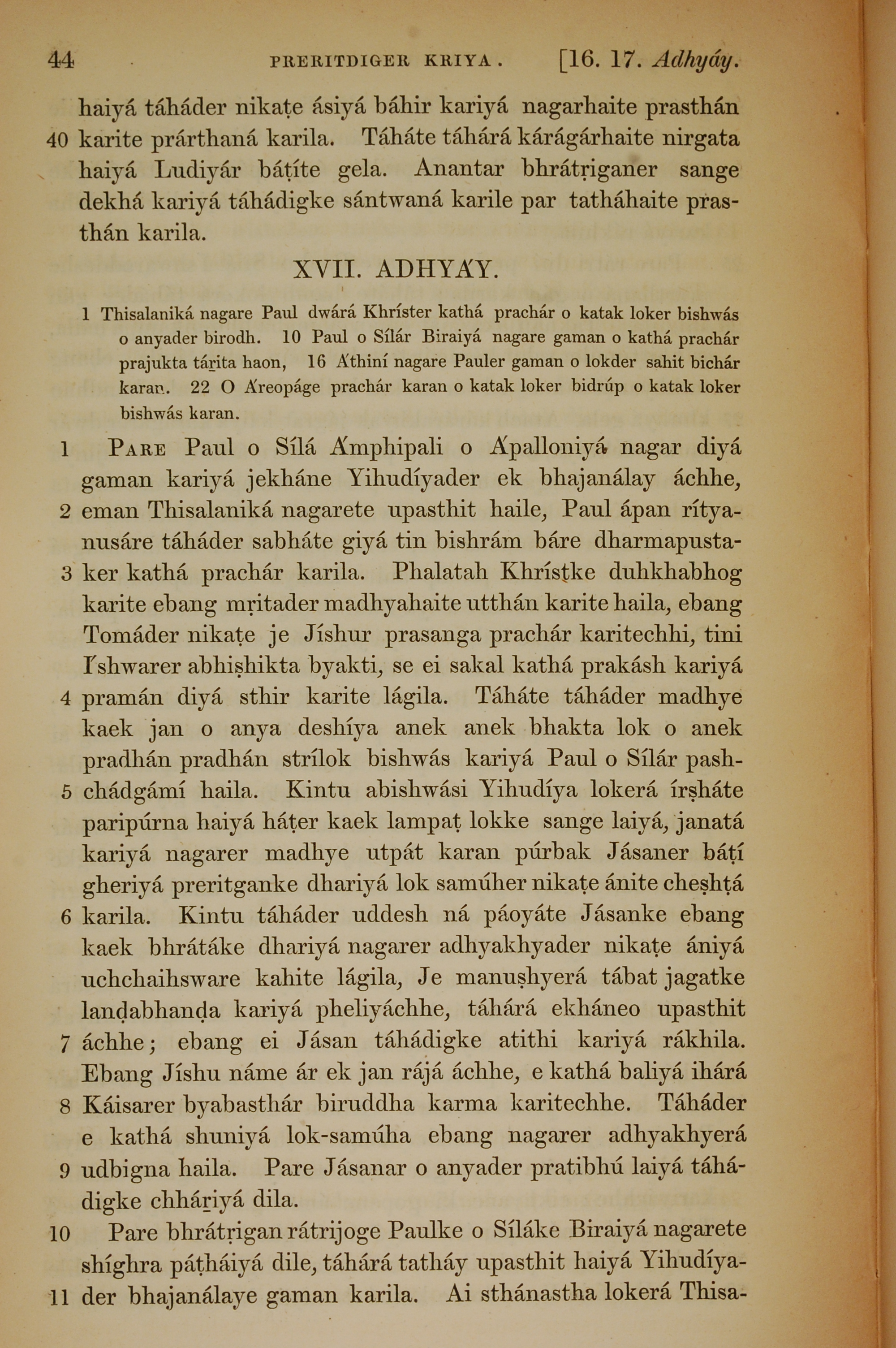 1839年孟加拉語新約全書 使徒行傳 16 章 40 節到 17 章 11 節