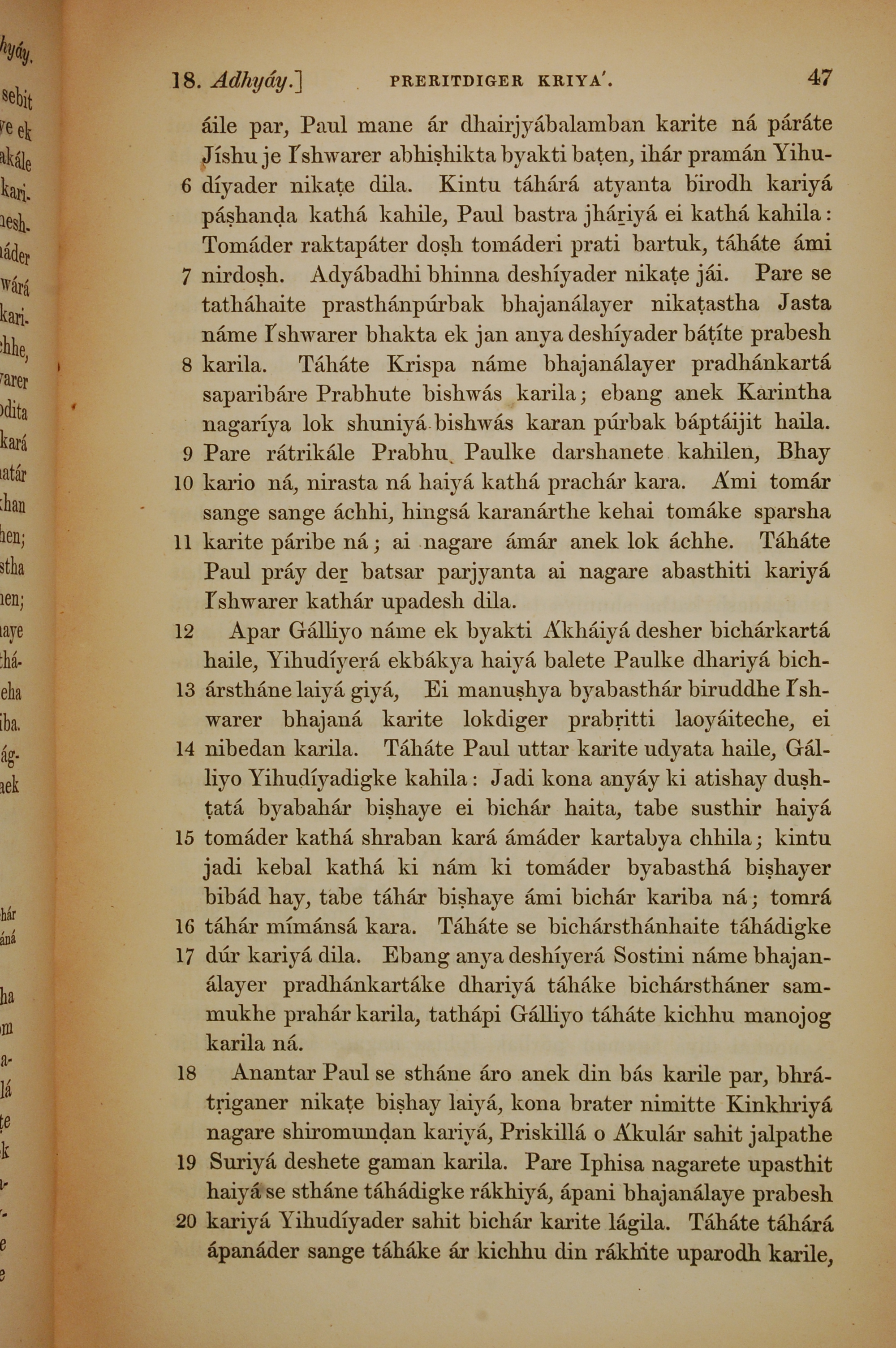1839年孟加拉語新約全書 使徒行傳 18 章 6 節到 18 章 20 節