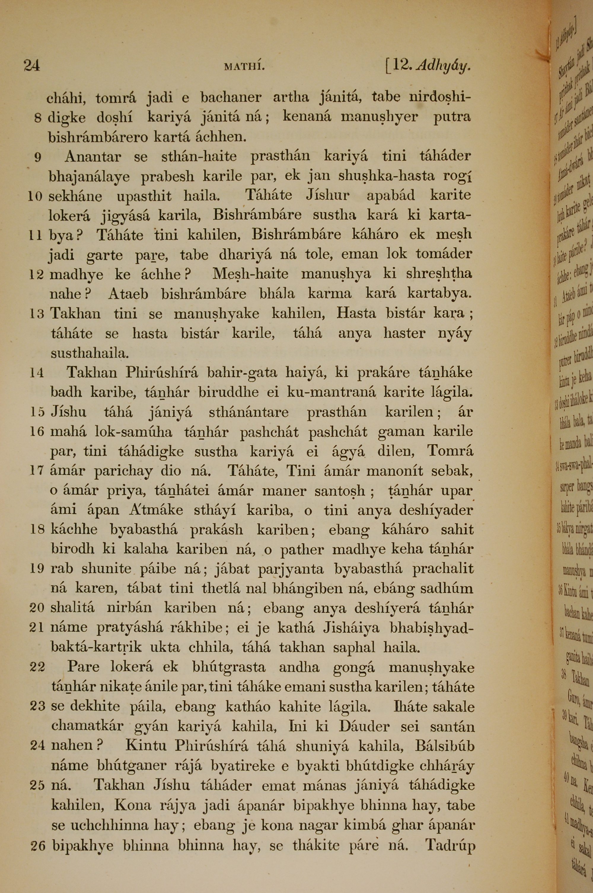 1839年孟加拉語新約全書 馬太福音 12 章 8 節到 12 章 26 節