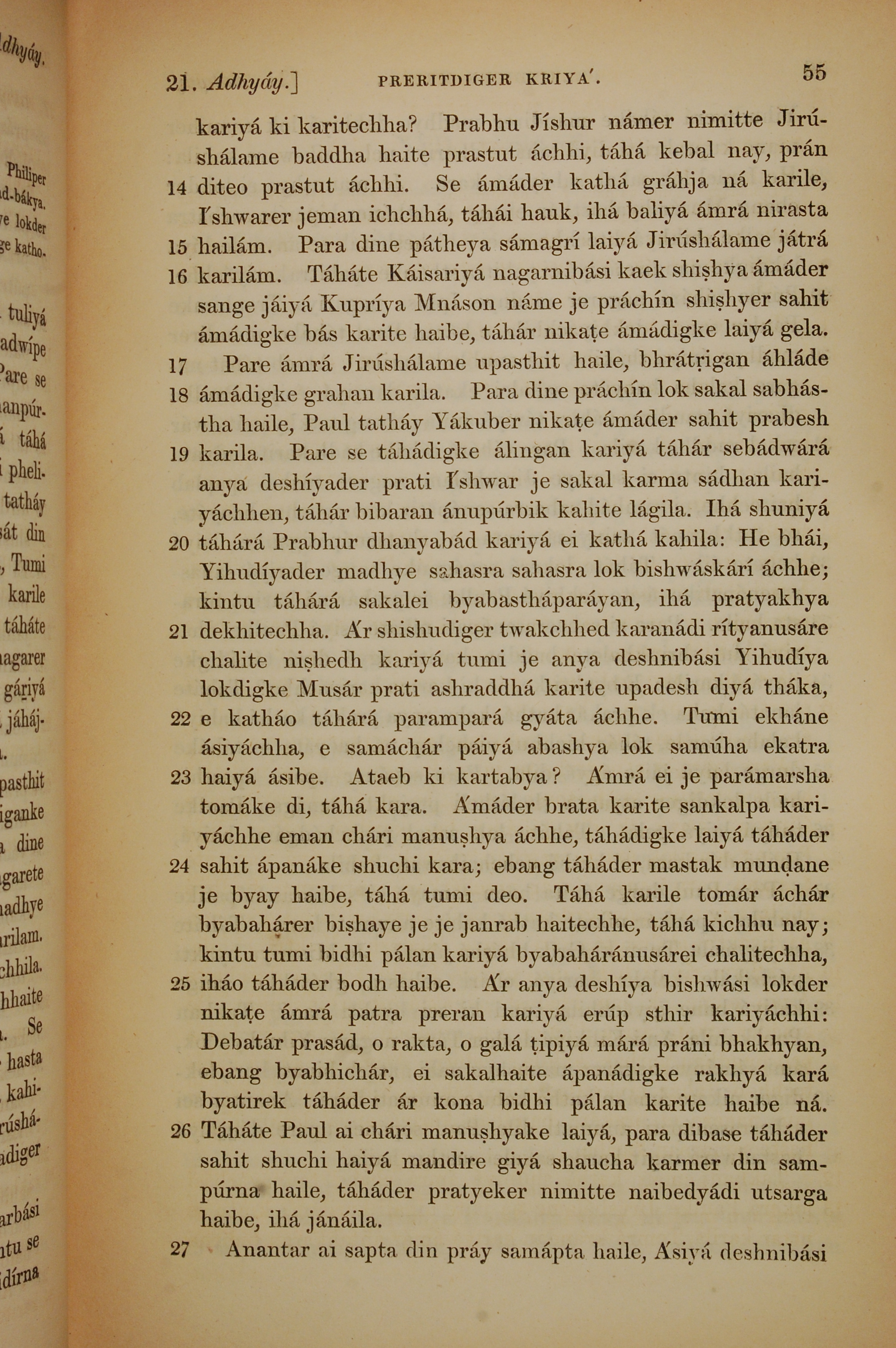 1839年孟加拉語新約全書 使徒行傳 21 章 14 節到 21 章 27 節