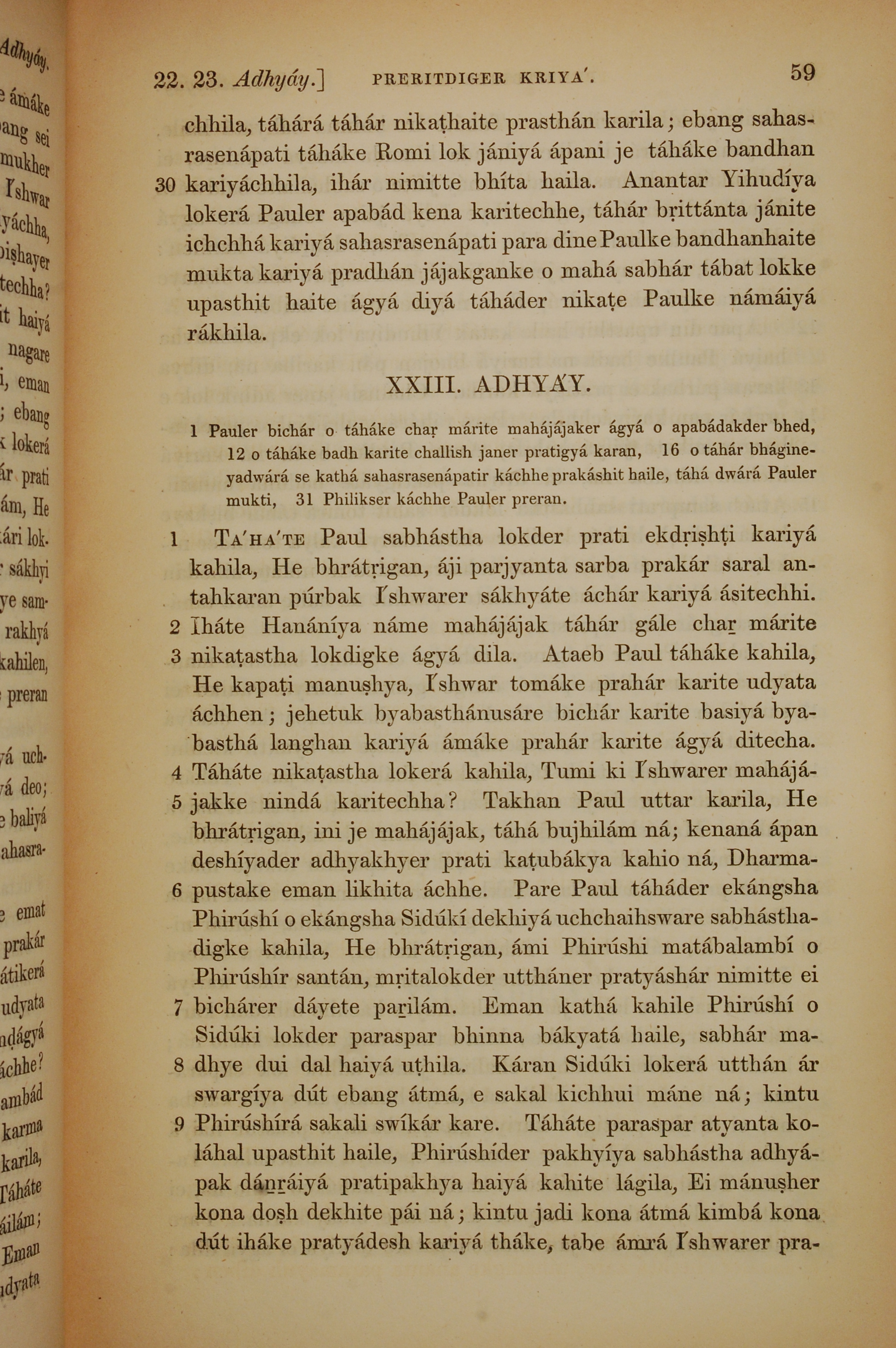 1839年孟加拉語新約全書 使徒行傳 22 章 30 節到 23 章 9 節