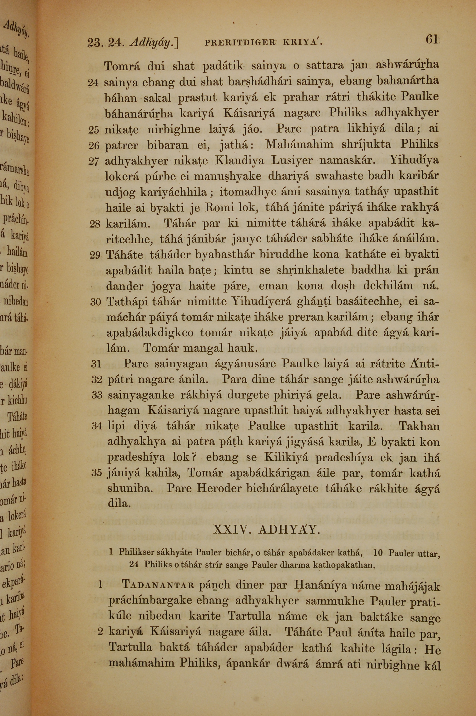 1839年孟加拉語新約全書 使徒行傳 23 章 24 節到 24 章 2 節