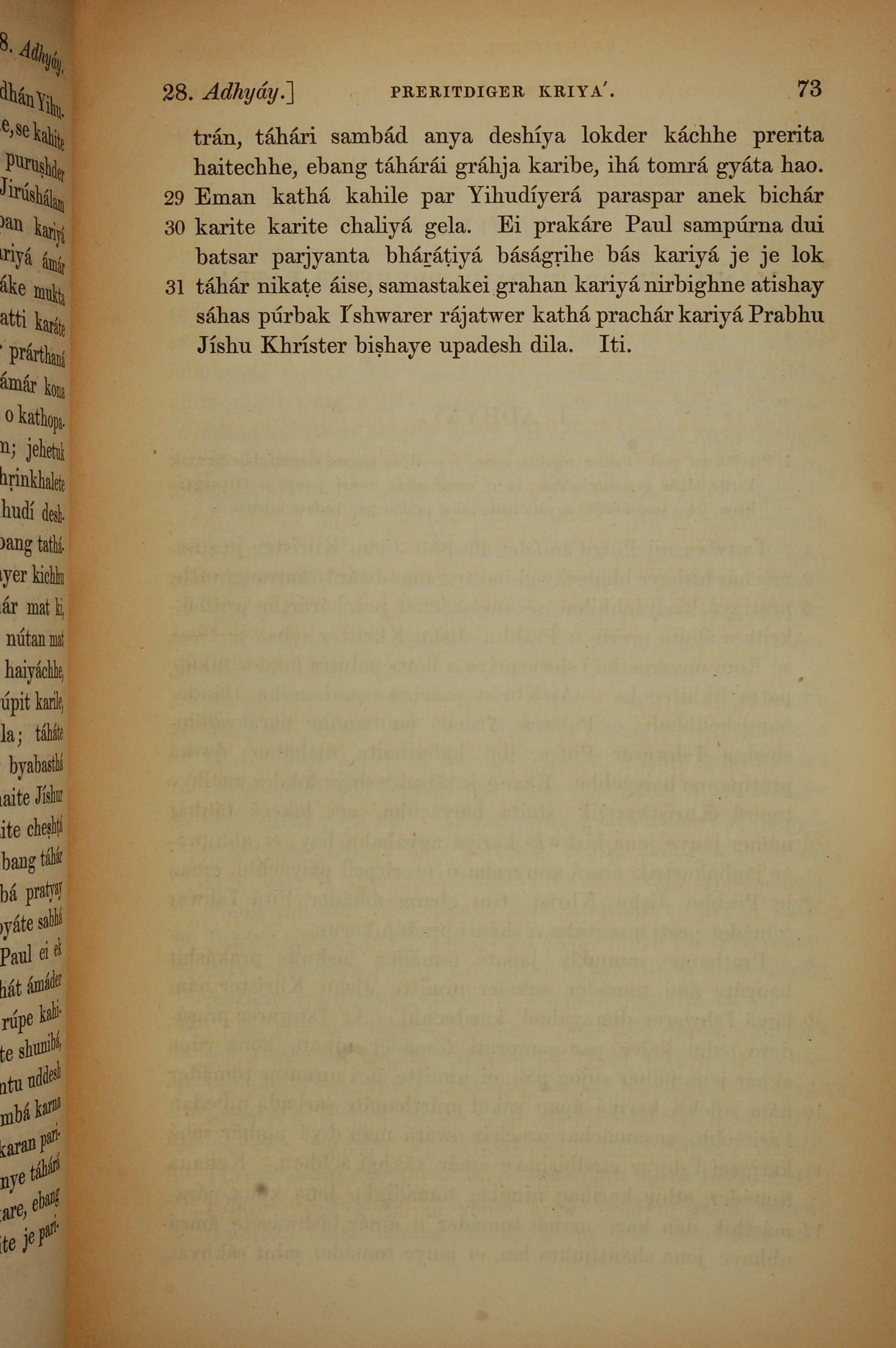 1839年孟加拉語新約全書 使徒行傳 28 章 29 節到 28 章 31 節