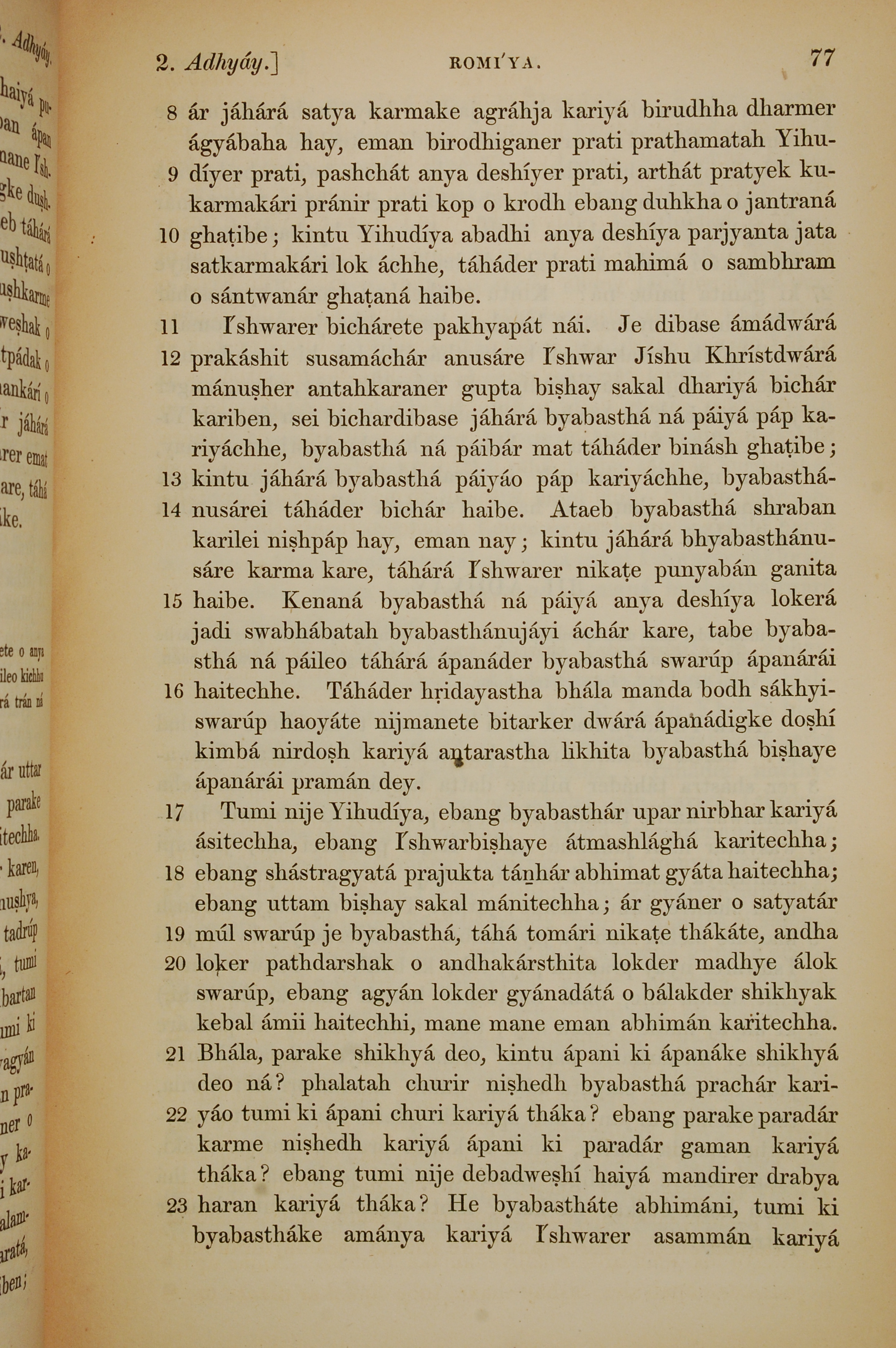 1839年孟加拉語新約全書 羅馬書 2 章 8 節到 2 章 23 節