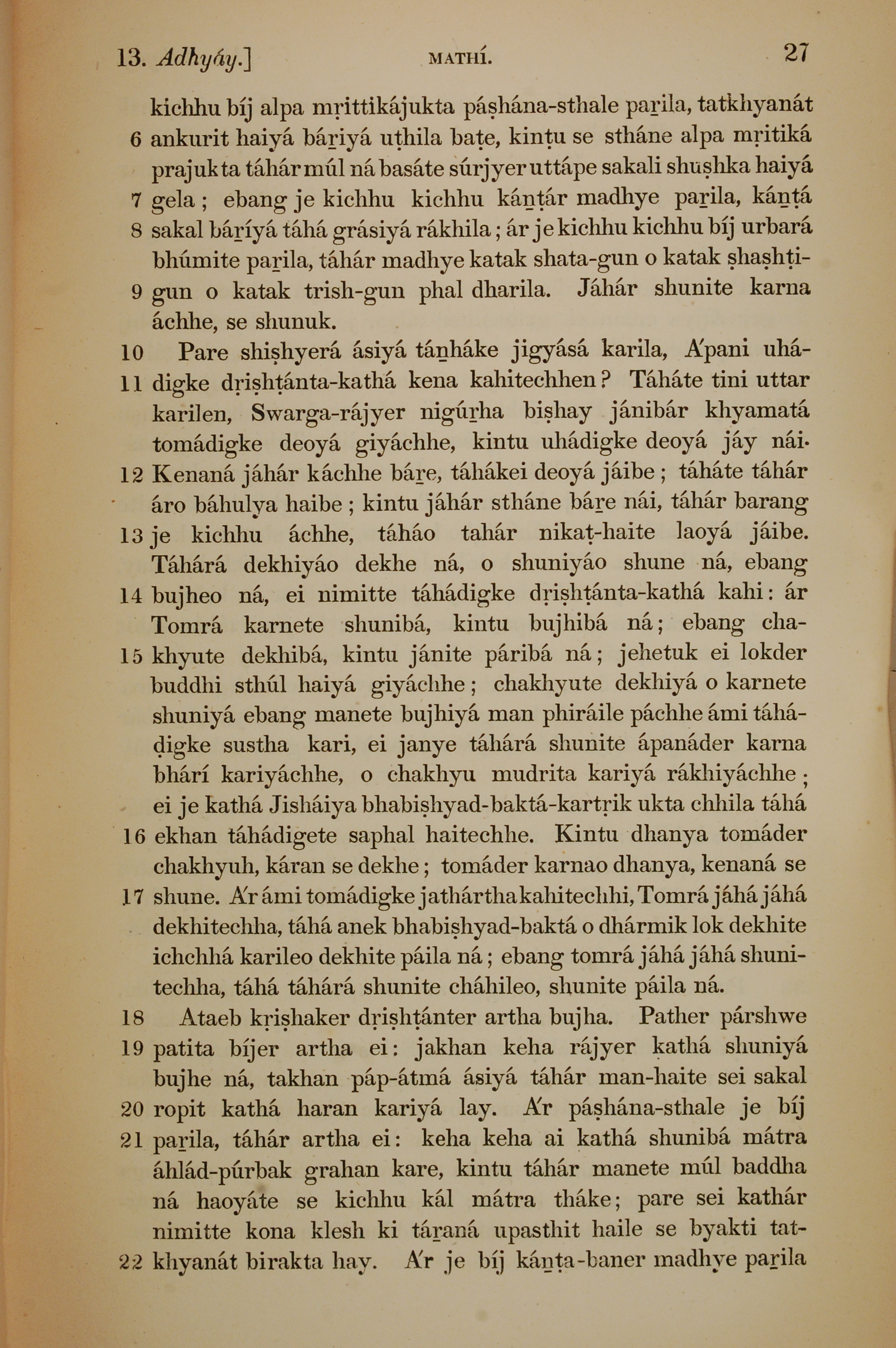 1839年孟加拉語新約全書 馬太福音 13 章 6 節到 13 章 22 節