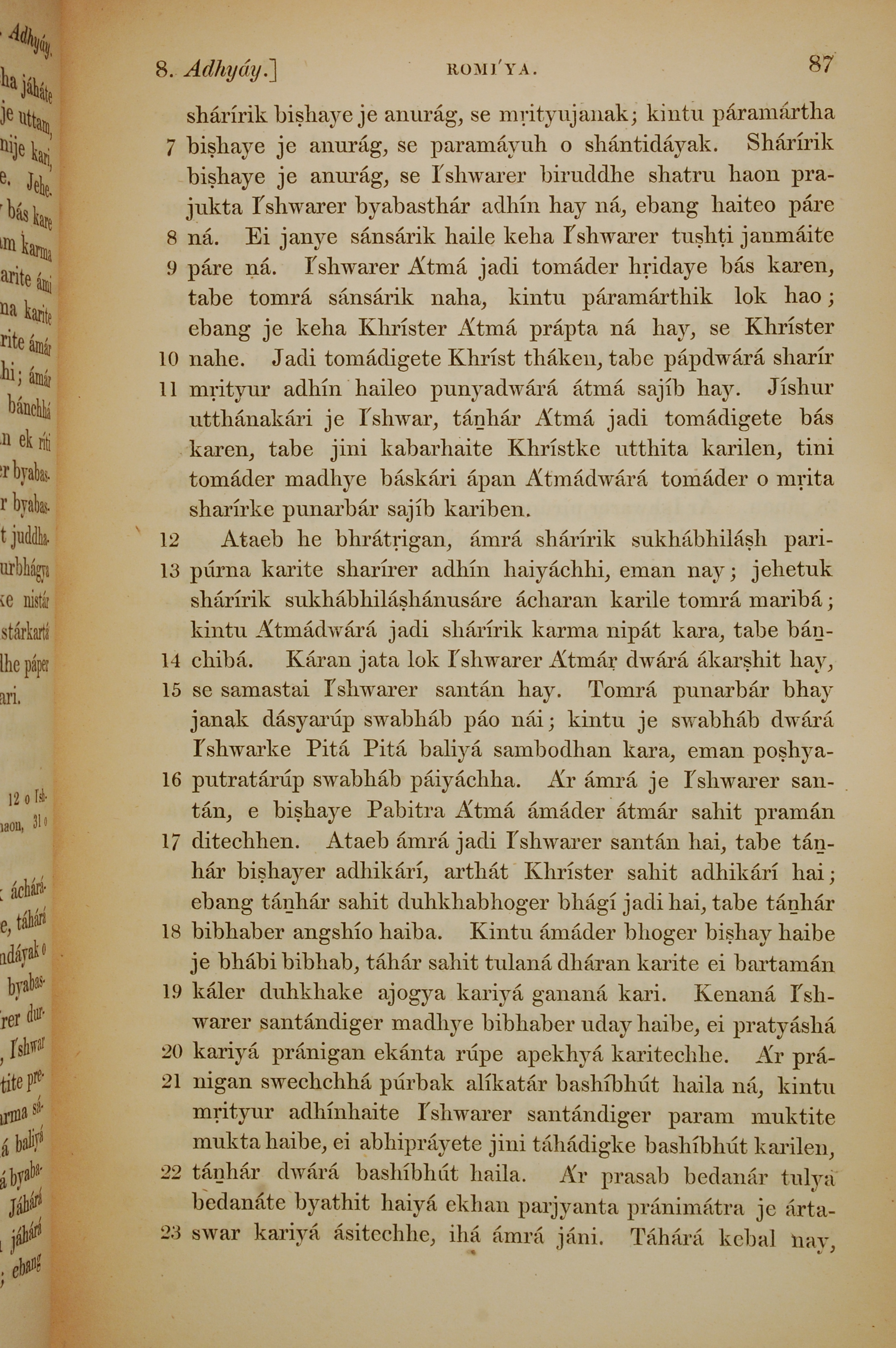 1839年孟加拉語新約全書 羅馬書 8 章 7 節到 8 章 23 節