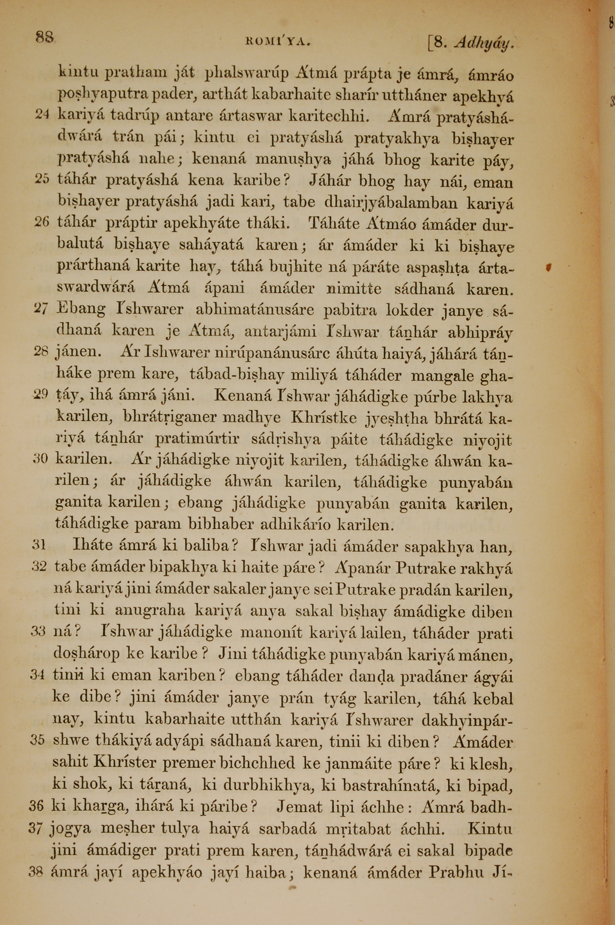1839年孟加拉語新約全書 羅馬書 8 章 24 節到 8 章 38 節