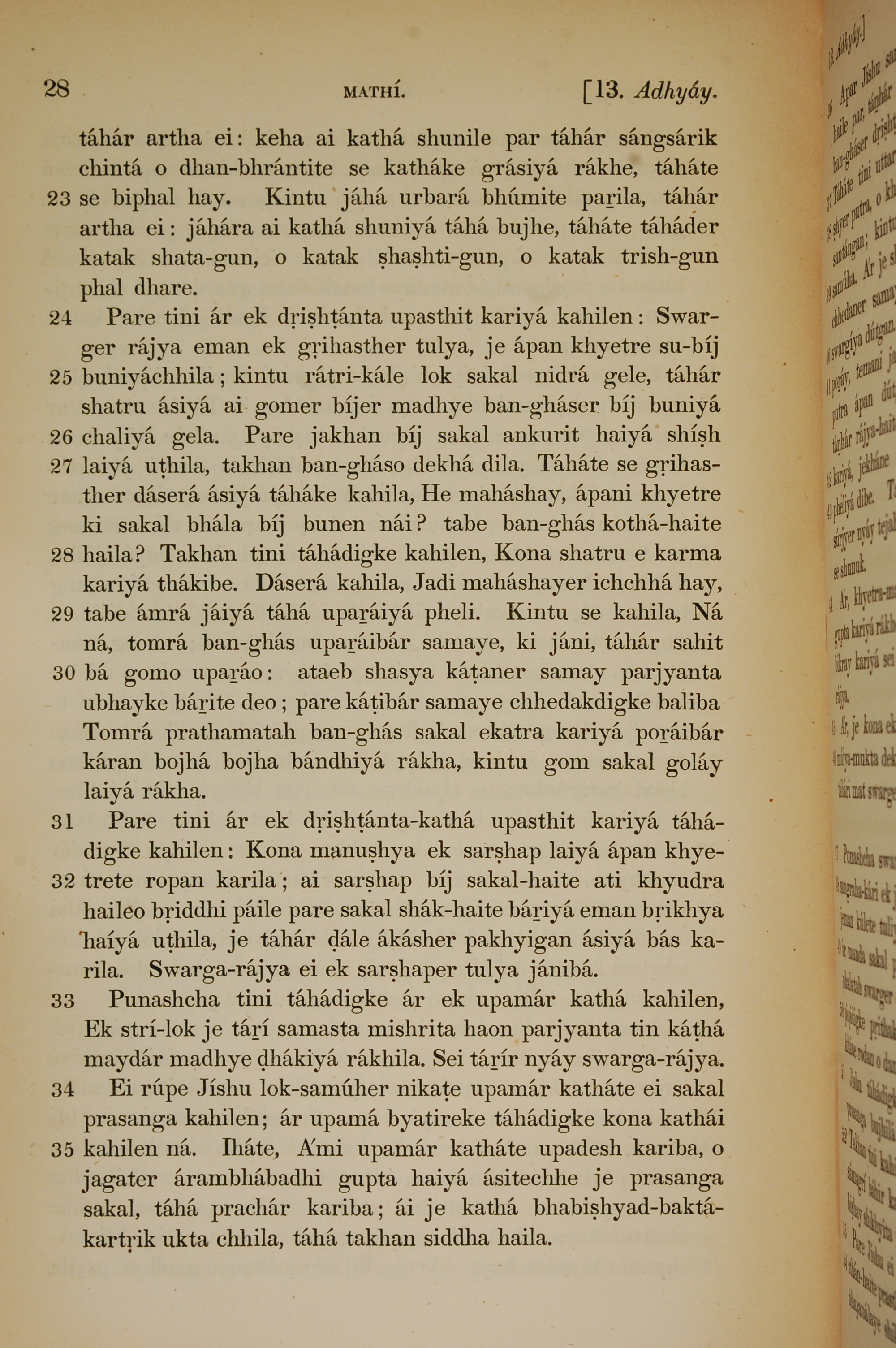 1839年孟加拉語新約全書 馬太福音 13 章 23 節到 13 章 35 節