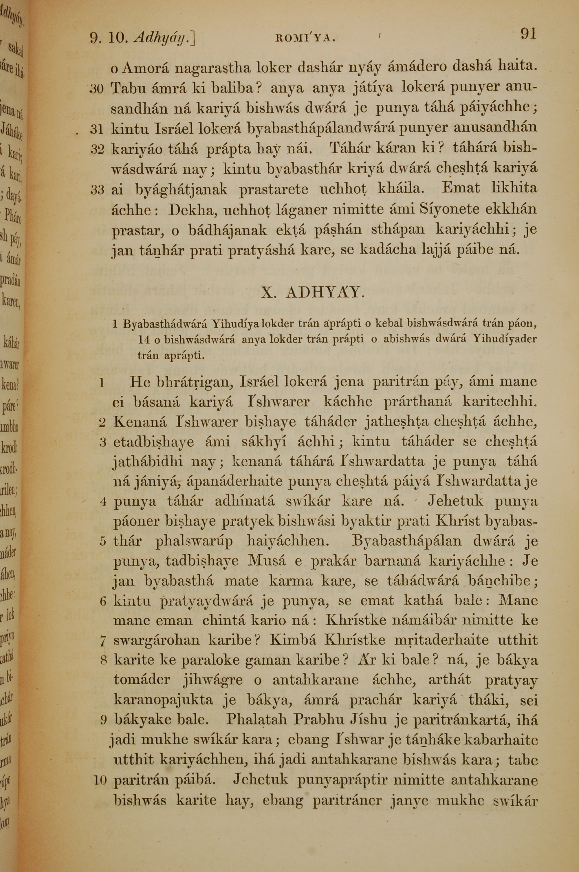 1839年孟加拉語新約全書 羅馬書 9 章 30 節到 10 章 10 節