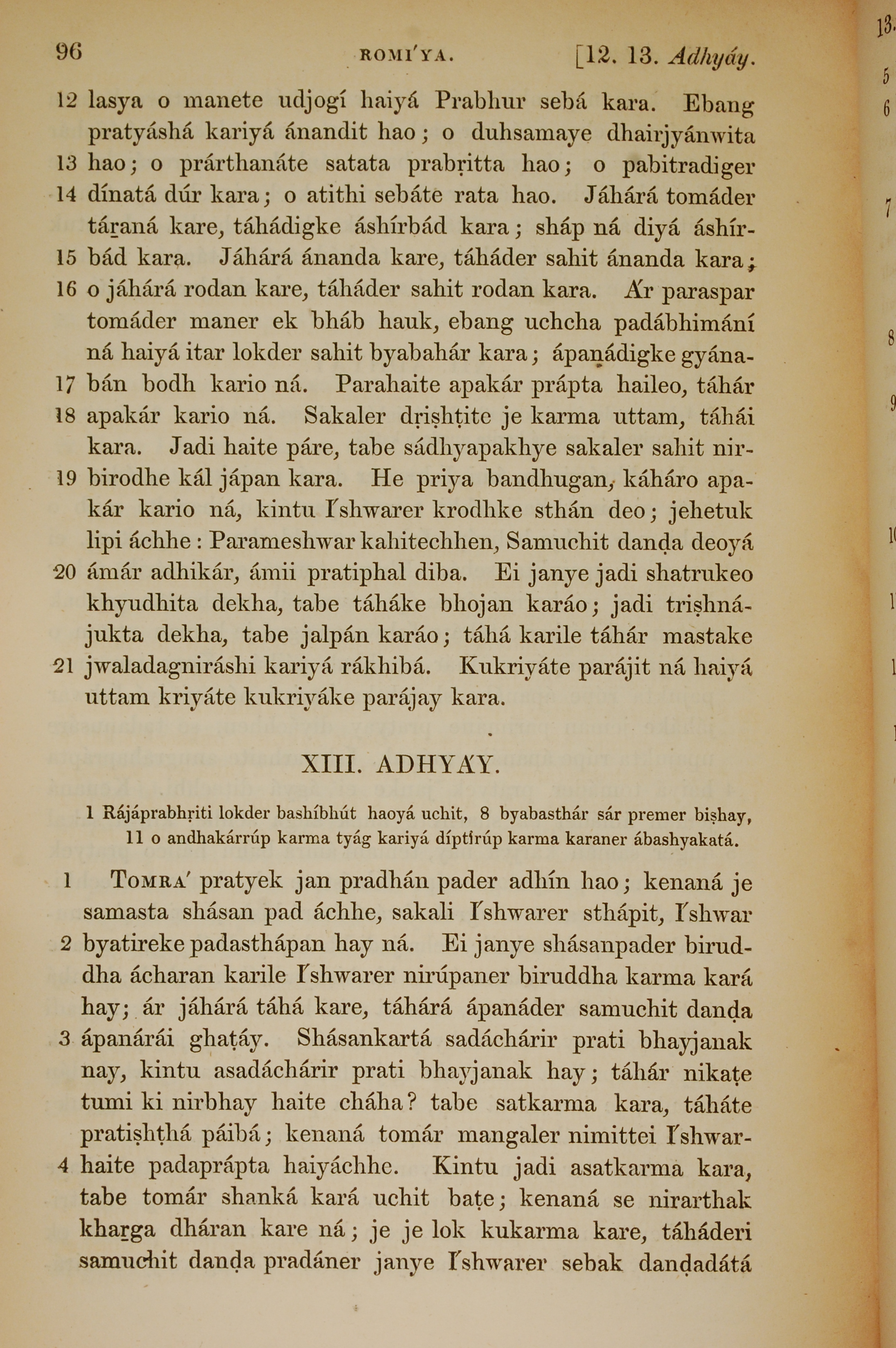 1839年孟加拉語新約全書 羅馬書 12 章 12 節到 13 章 4 節