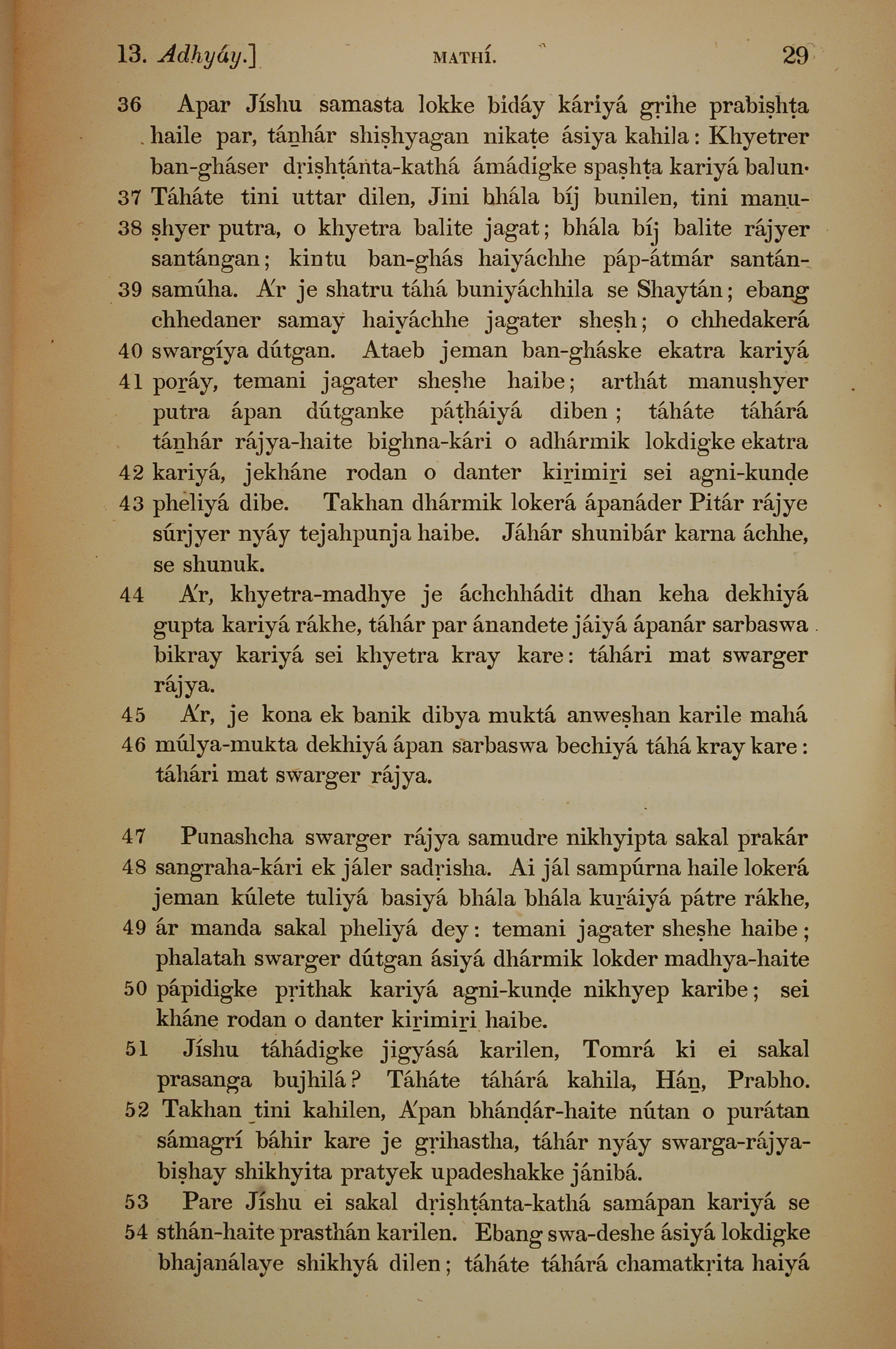 1839年孟加拉語新約全書 馬太福音 13 章 36 節到 13 章 54 節