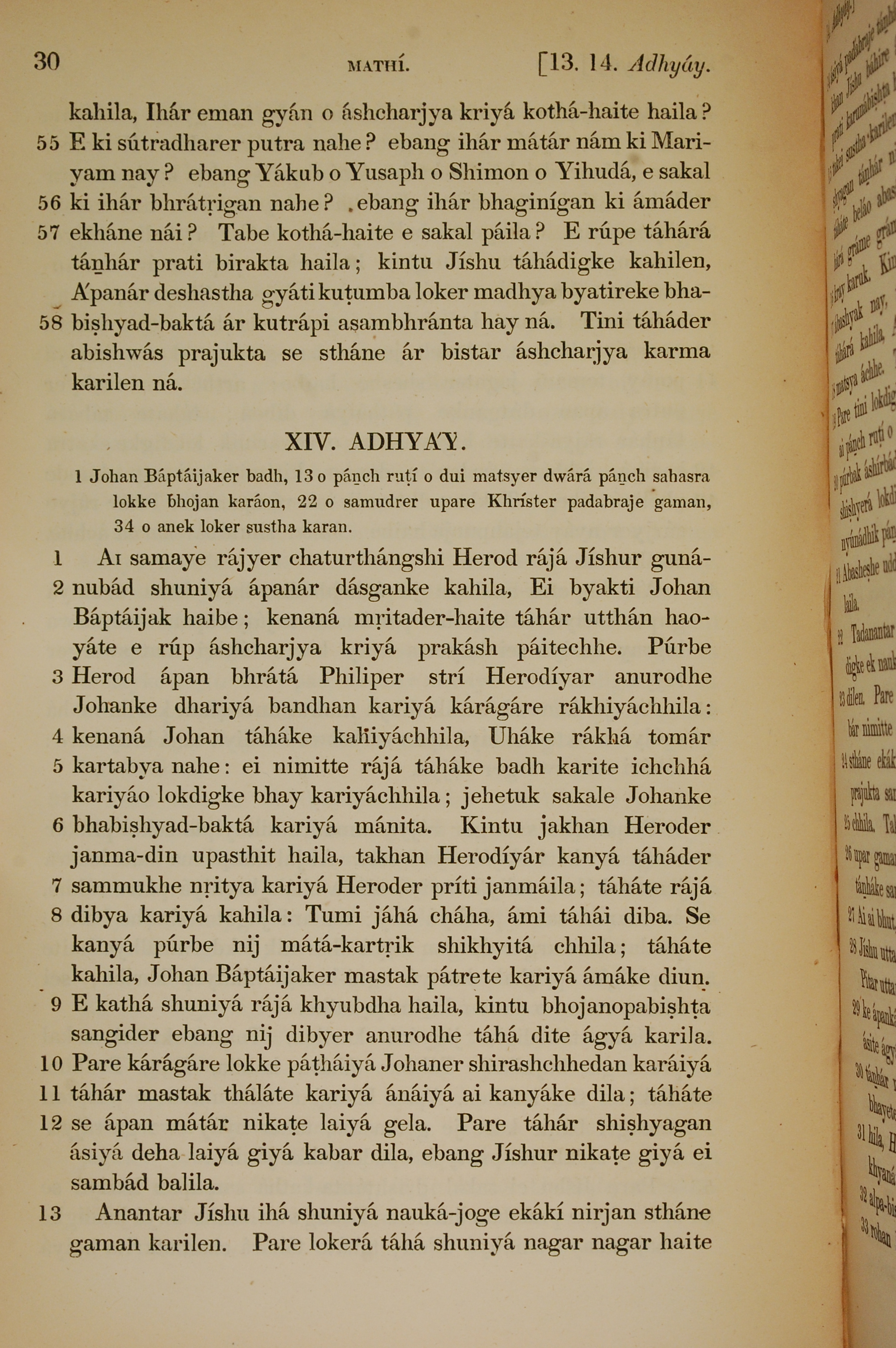 1839年孟加拉語新約全書 馬太福音 13 章 55 節到 14 章 13 節