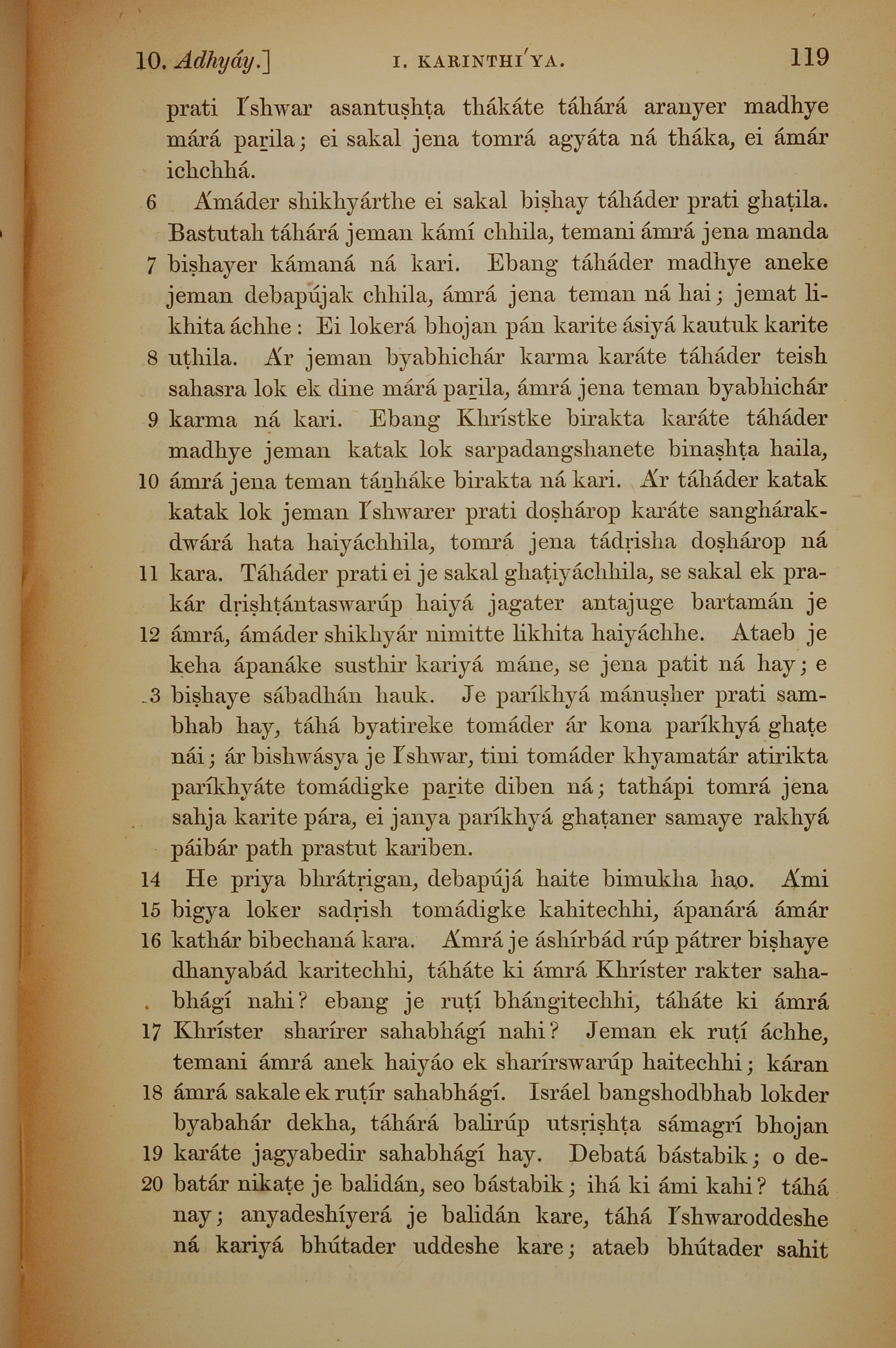 1839年孟加拉語新約全書 哥林多前書 10 章 6 節到 10 章 20 節