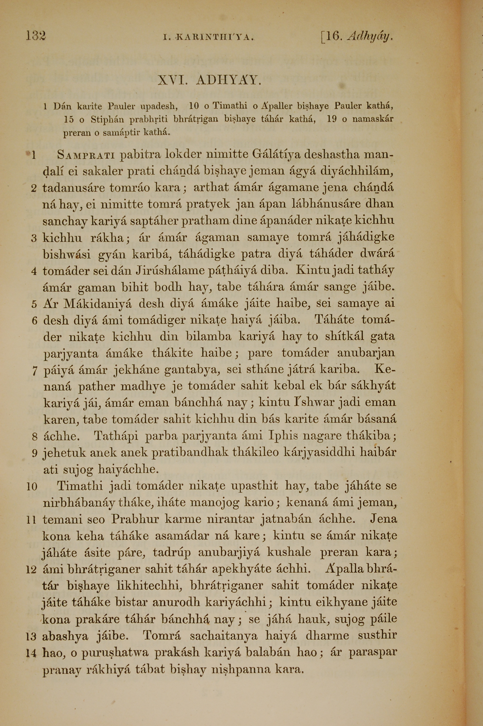 1839年孟加拉語新約全書 哥林多前書 16 章 1 節到 16 章 14 節