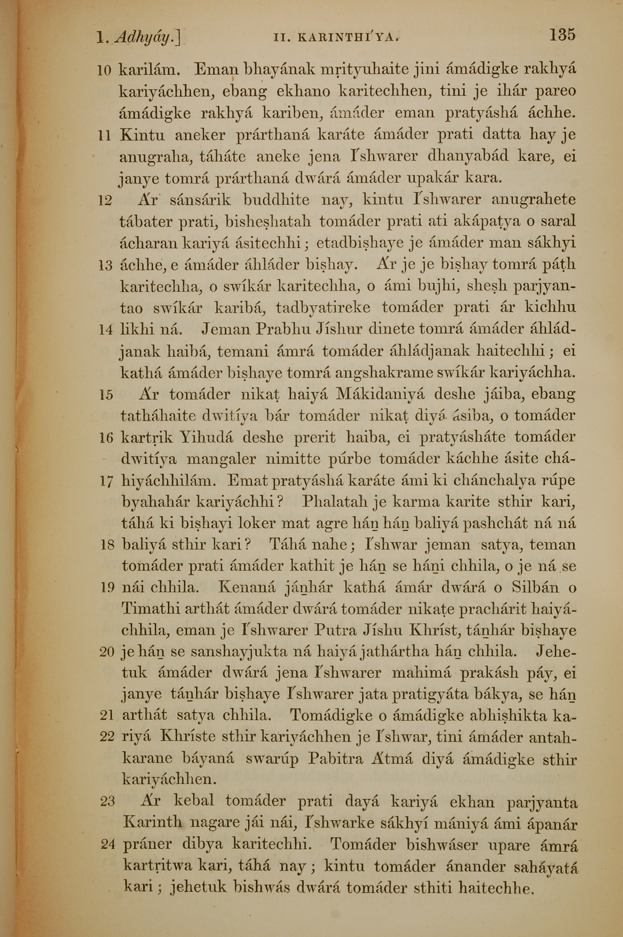 1839年孟加拉語新約全書 哥林多後書 1 章 10 節到 1 章 24 節