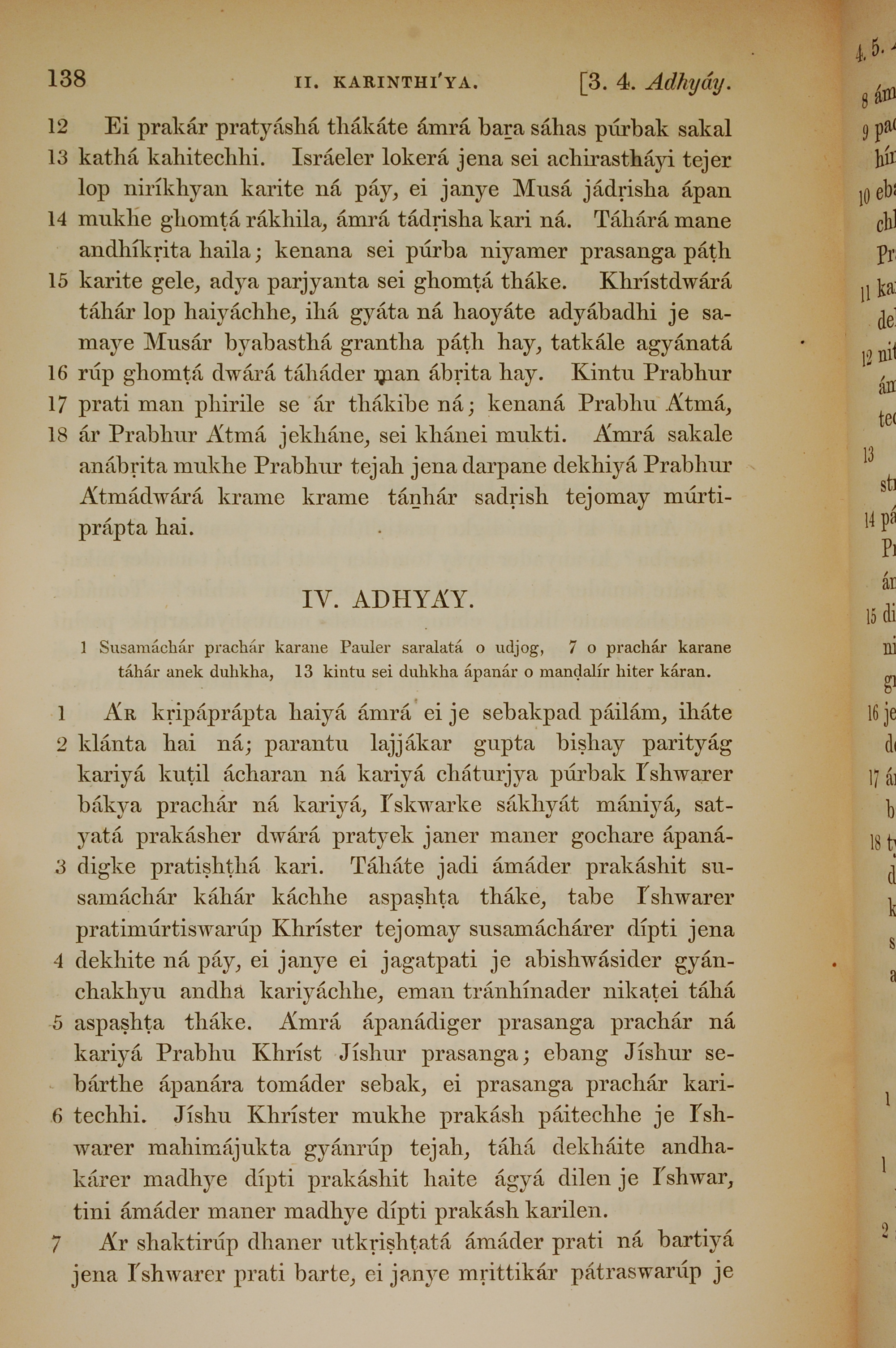 1839年孟加拉語新約全書 哥林多後書 3 章 12 節到 4 章 7 節