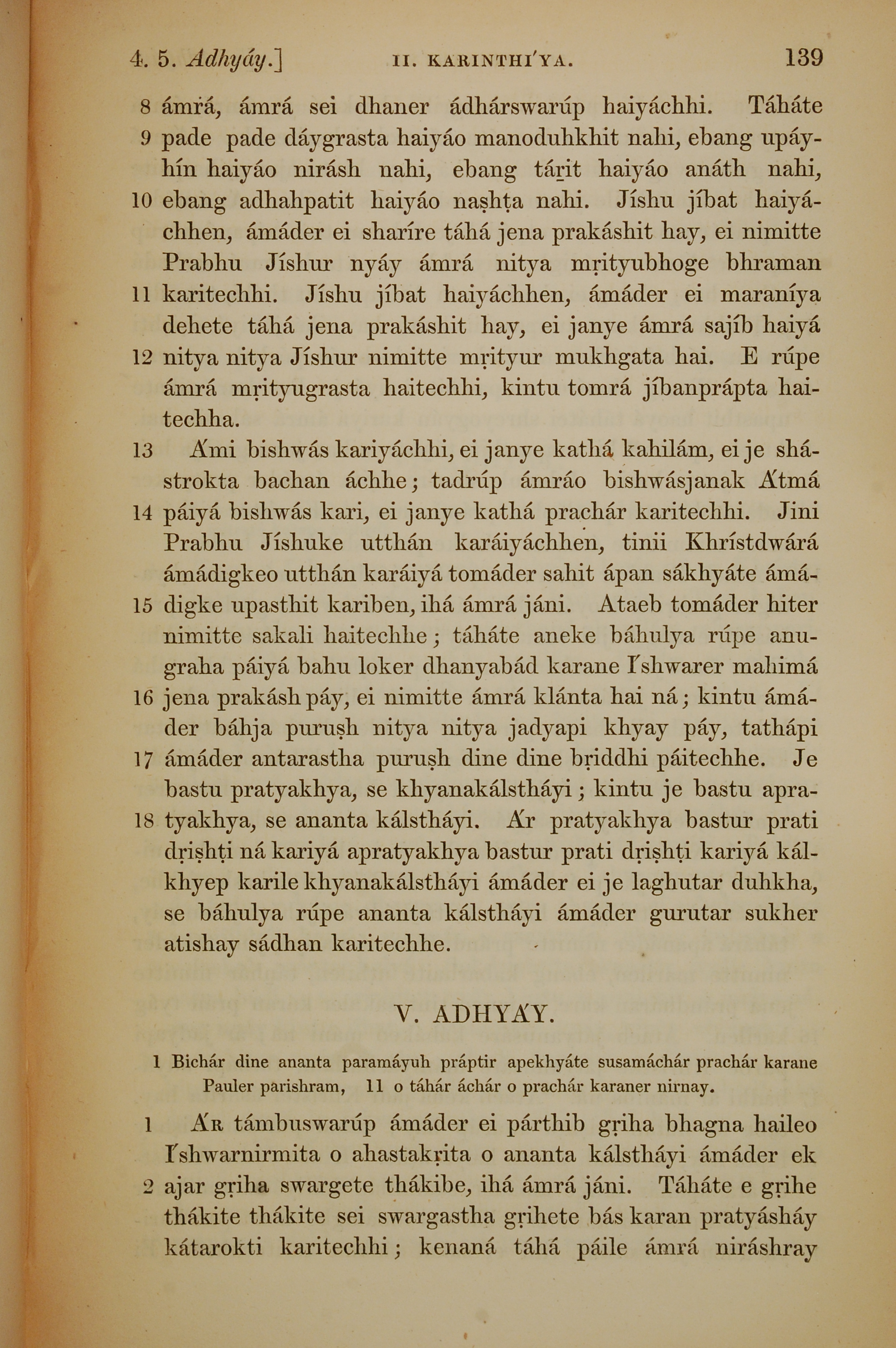 1839年孟加拉語新約全書 哥林多後書 4 章 8 節到 5 章 2 節