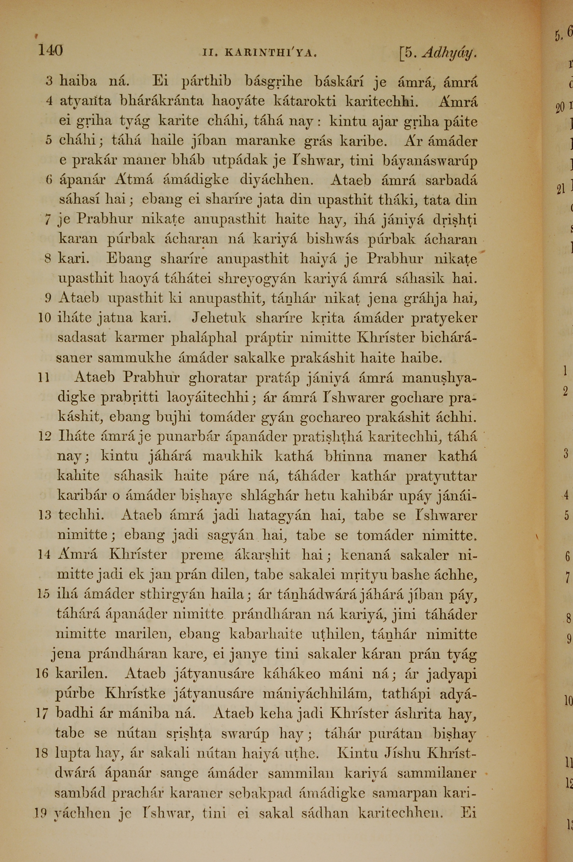 1839年孟加拉語新約全書 哥林多後書 5 章 3 節到 5 章 19 節