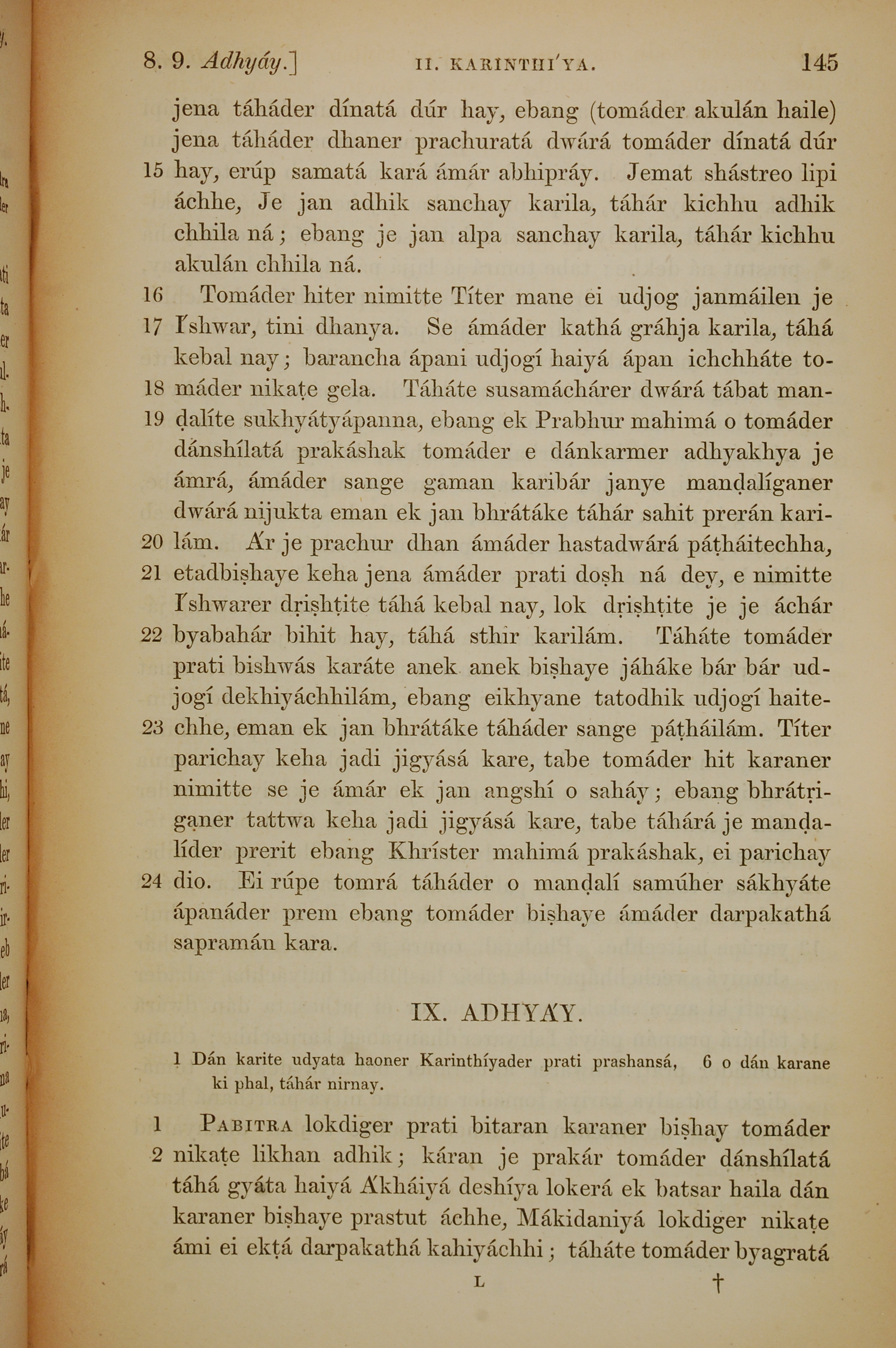 1839年孟加拉語新約全書 哥林多後書 8 章 15 節到 9 章 2 節