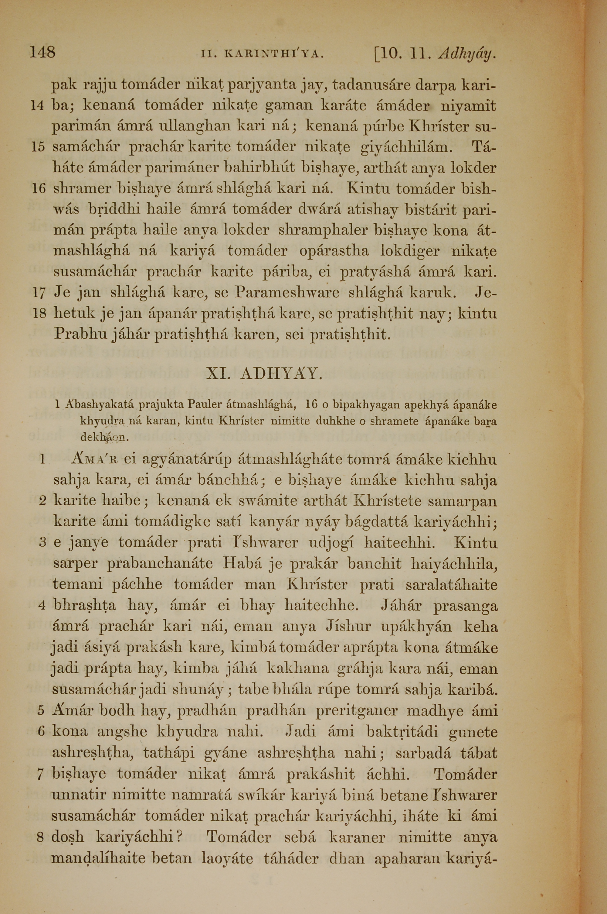 1839年孟加拉語新約全書 哥林多後書 10 章 14 節到 11 章 8 節