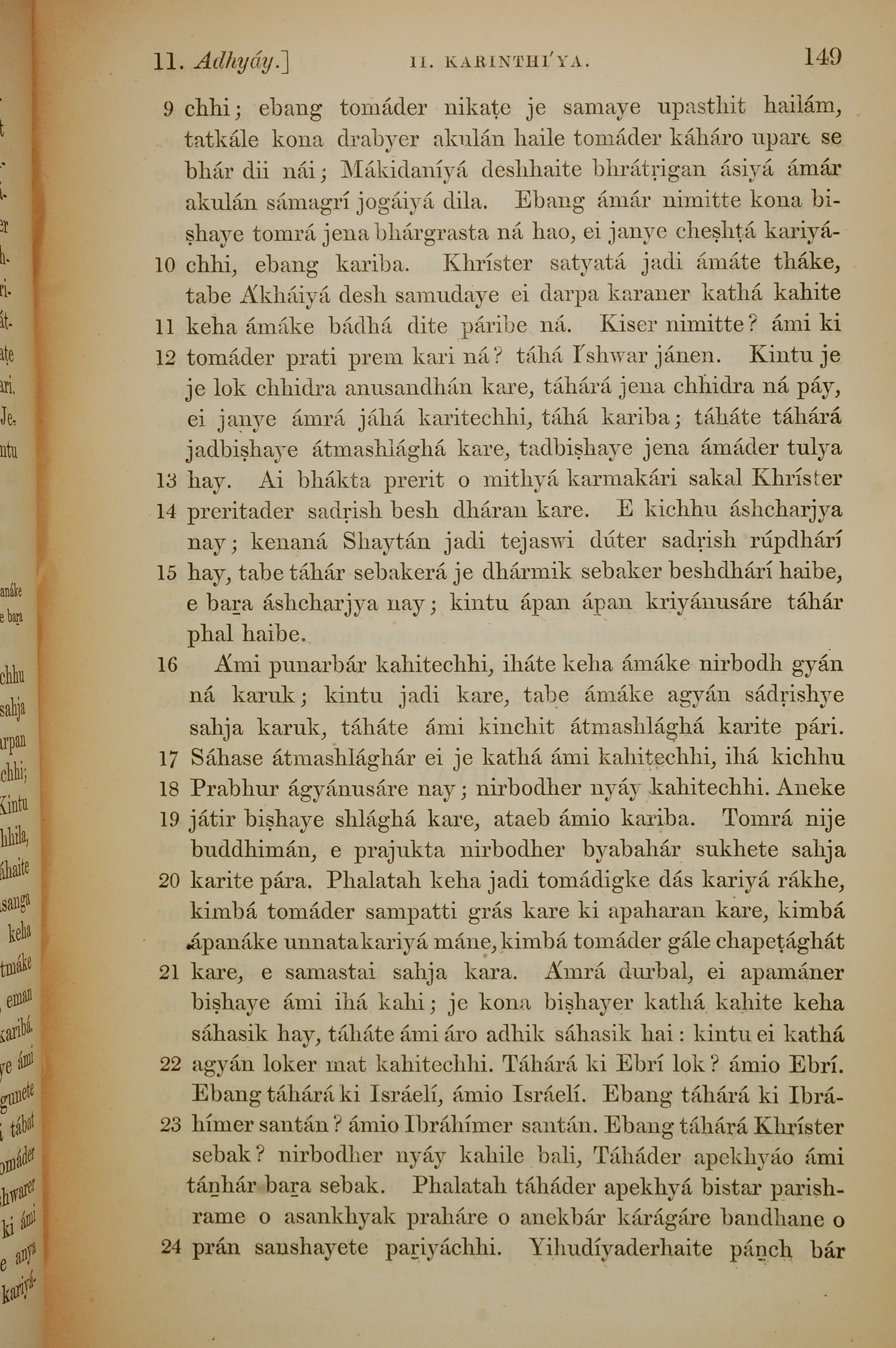 1839年孟加拉語新約全書 哥林多後書 11 章 9 節到 11 章 24 節