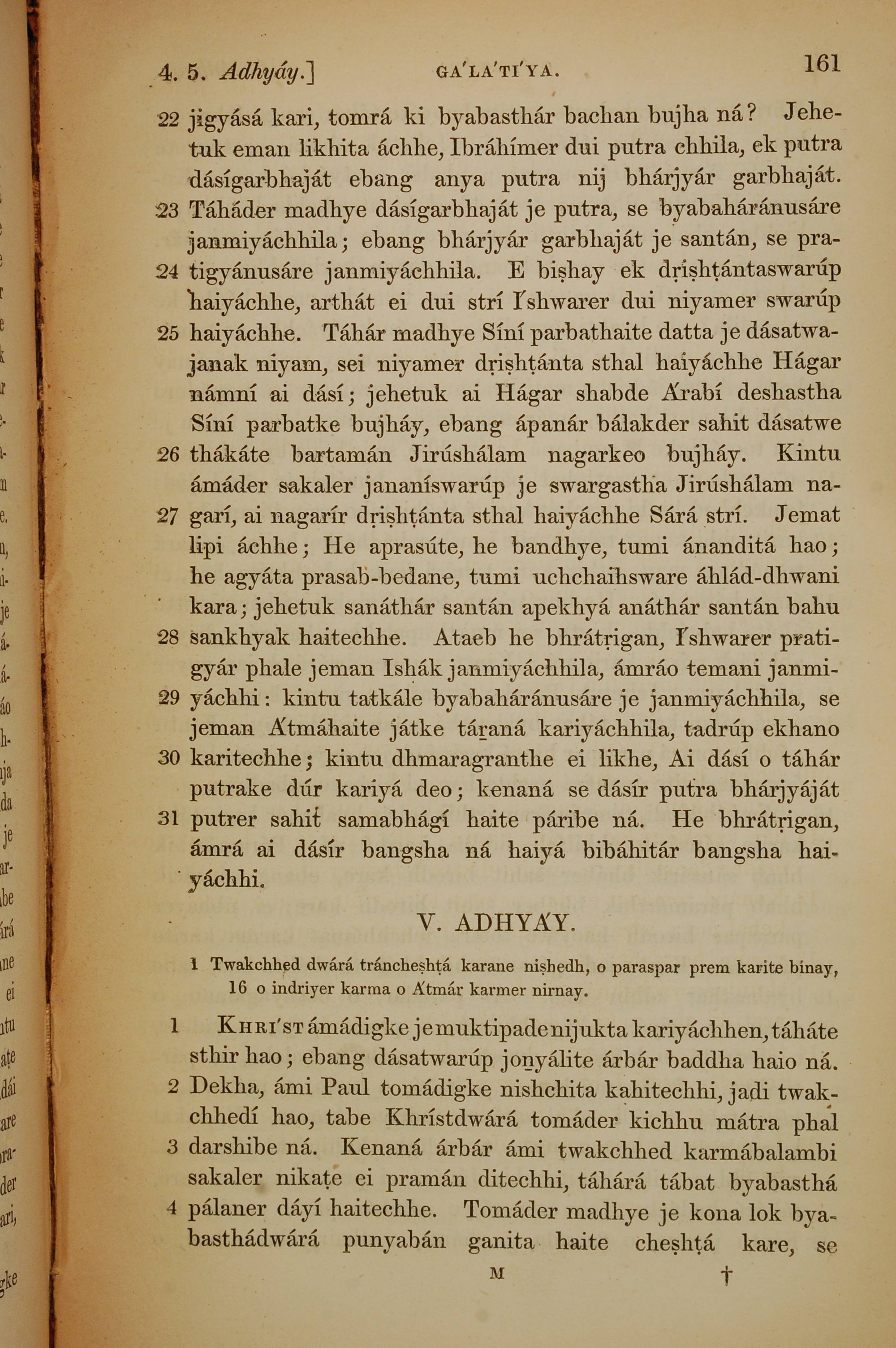1839年孟加拉語新約全書 加拉太書 4 章 22 節到 5 章 4 節
