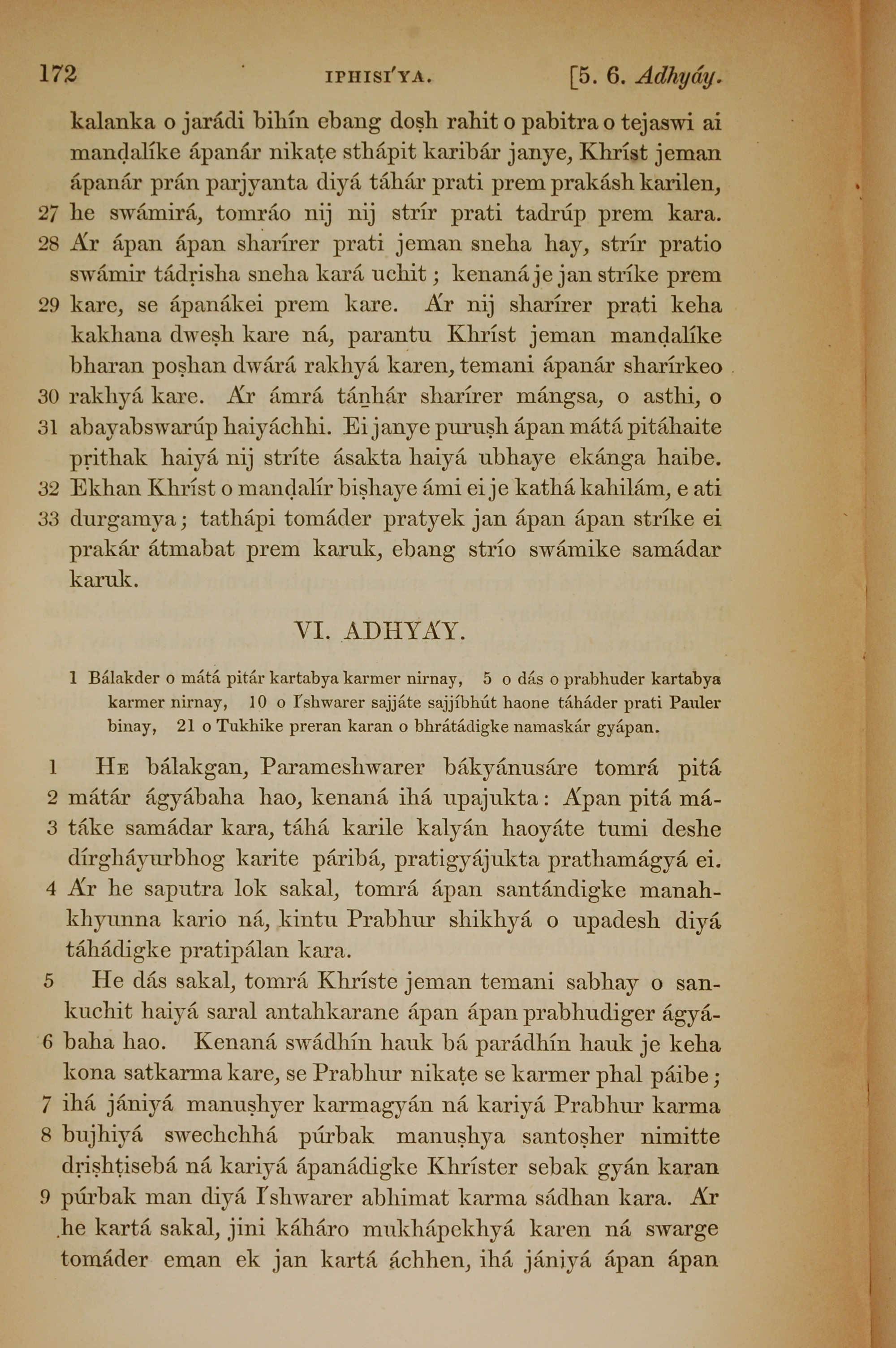 1839年孟加拉語新約全書 以弗所書 5 章 27 節到 6 章 9 節