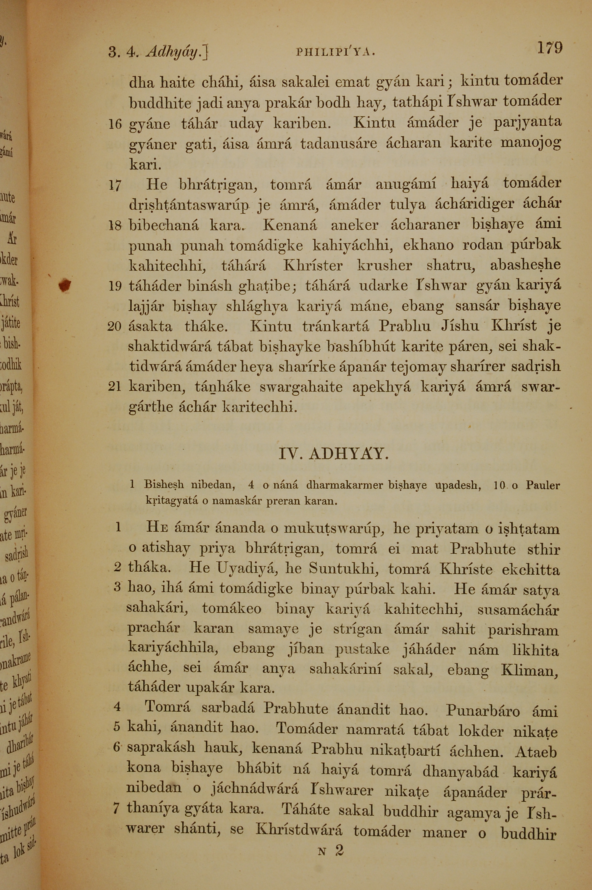 1839年孟加拉語新約全書 腓立比書 3 章 16 節到 4 章 7 節