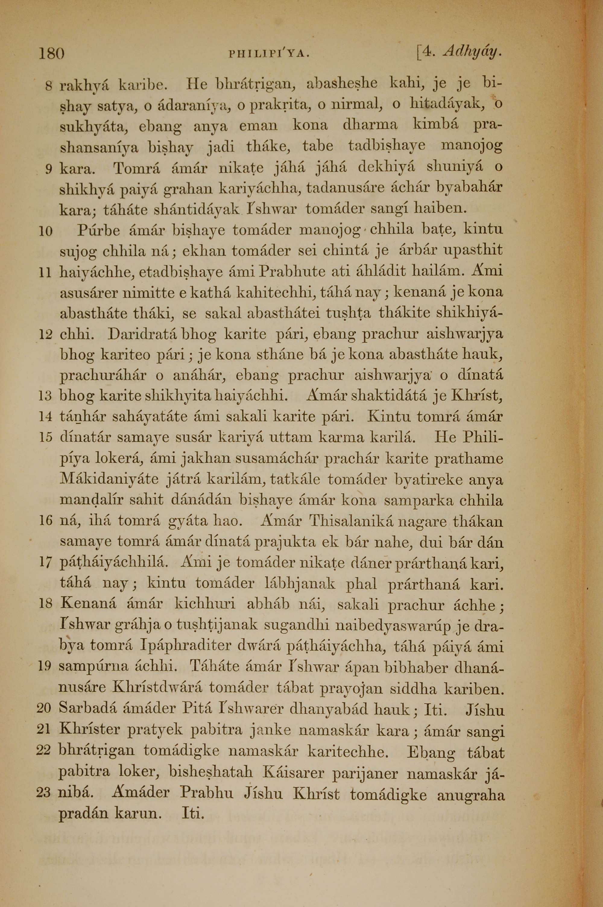 1839年孟加拉語新約全書 腓立比書 4 章 8 節到 4 章 23 節