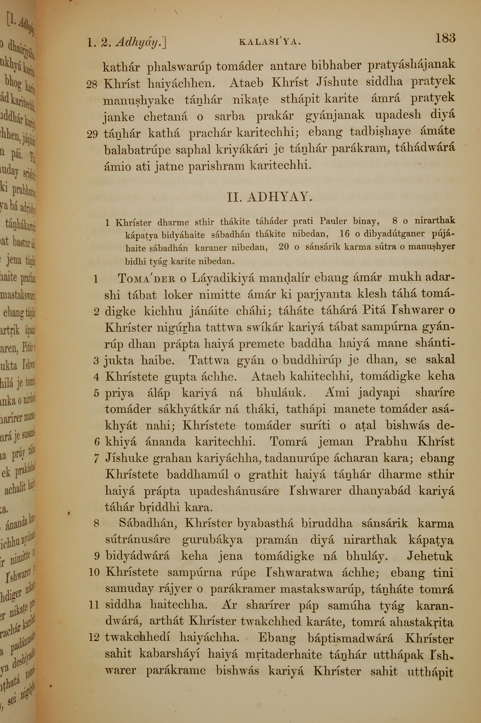 1839年孟加拉語新約全書 歌羅西書 1 章 28 節到 2 章 12 節