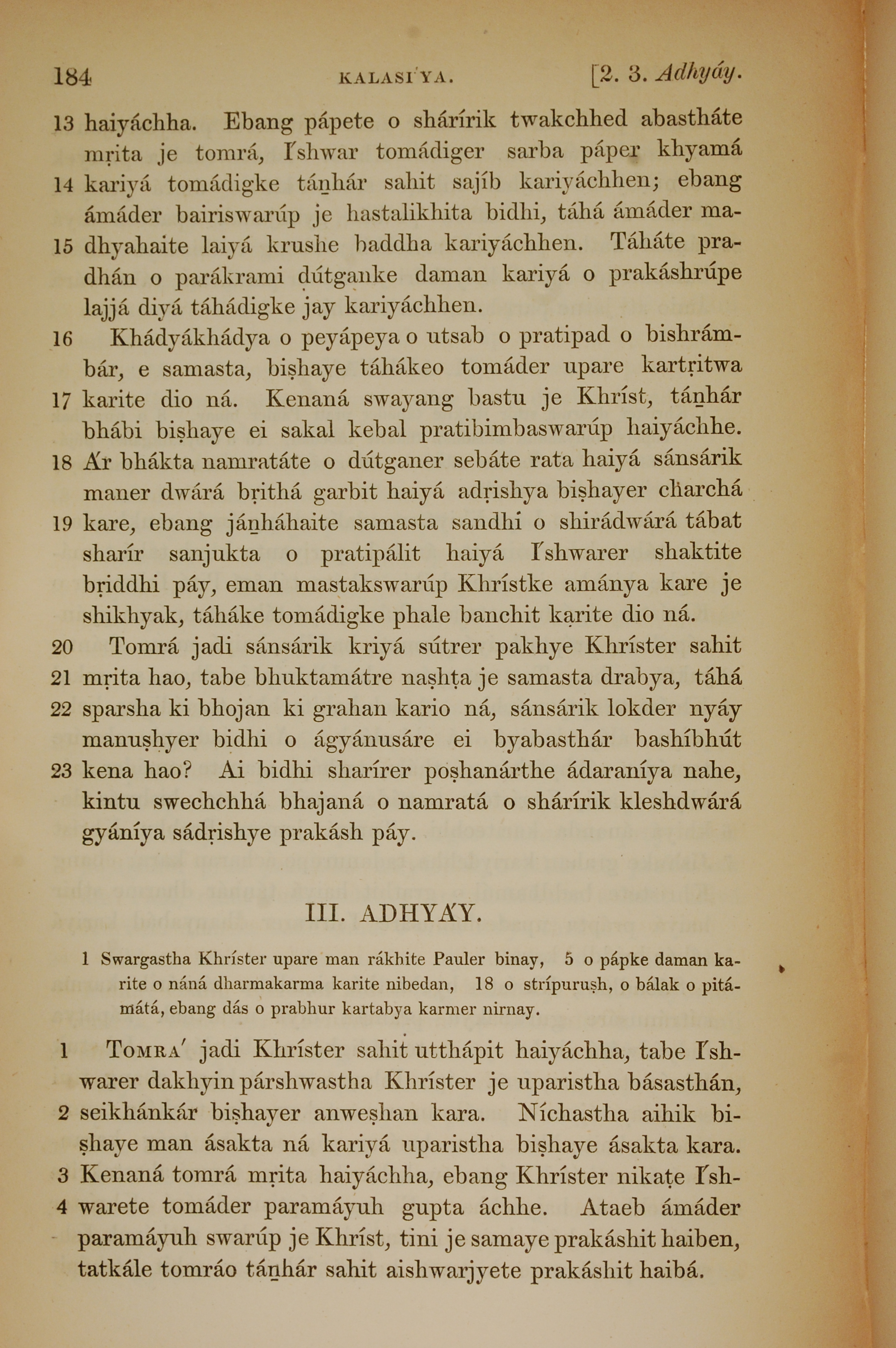 1839年孟加拉語新約全書 歌羅西書 2 章 13 節到 3 章 4 節