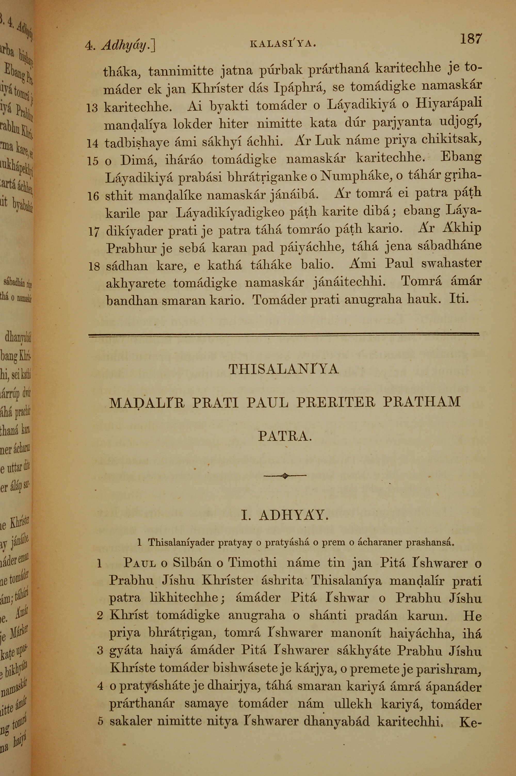 1839年孟加拉語新約全書 帖撒羅尼迦前書 1 章 1 節到 1 章 5 節