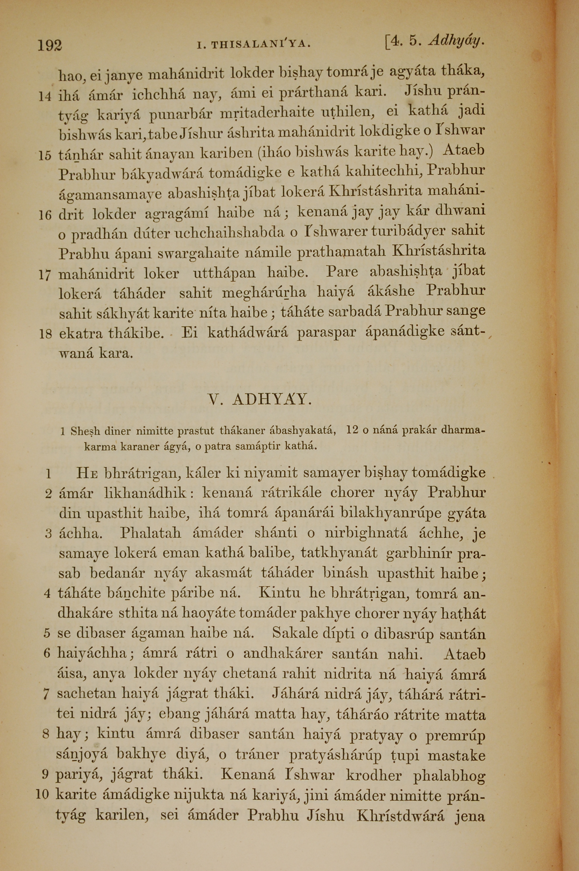 1839年孟加拉語新約全書 帖撒羅尼迦前書 4 章 14 節到 5 章 10 節