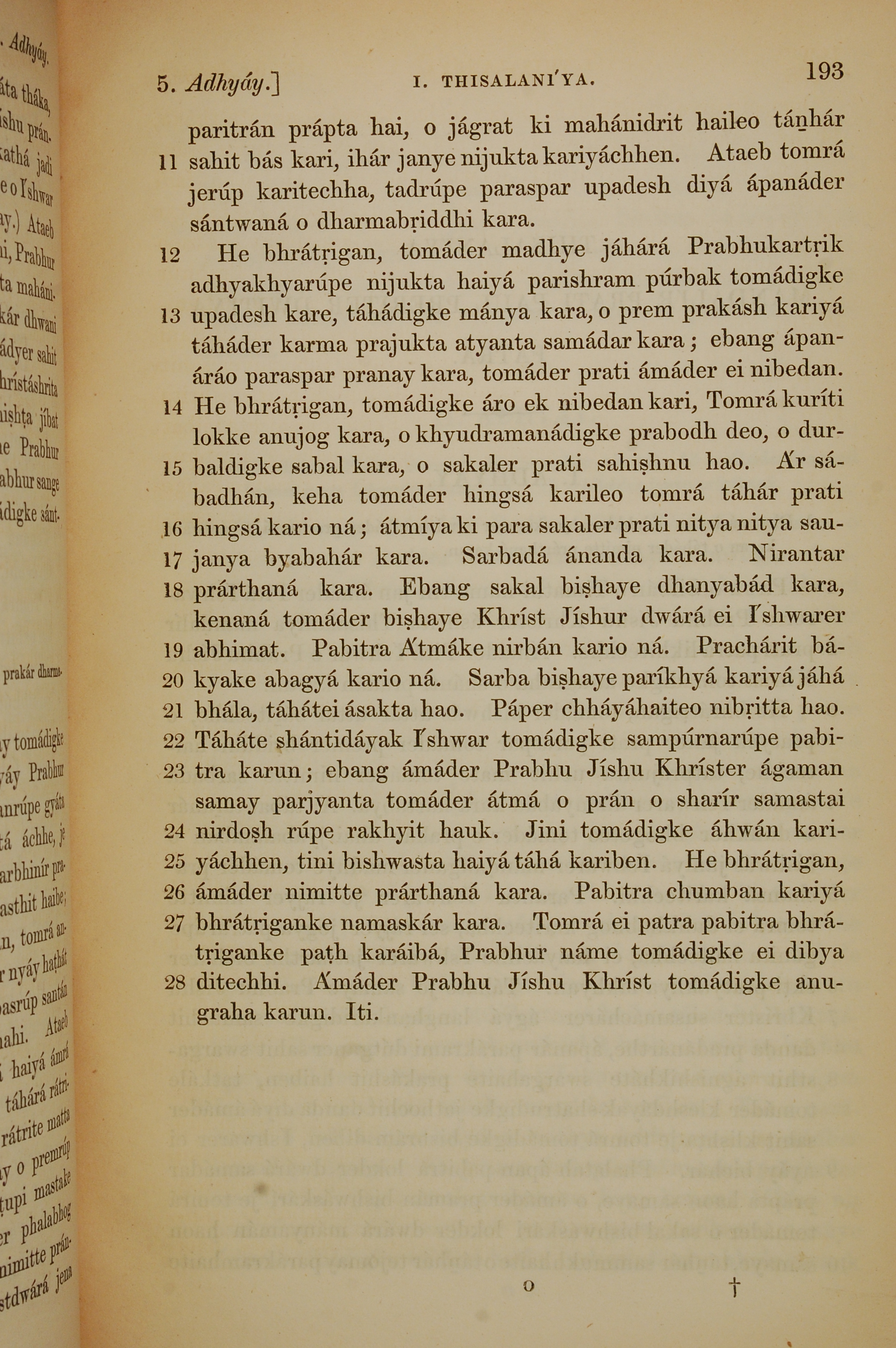 1839年孟加拉語新約全書 帖撒羅尼迦前書 5 章 11 節到 5 章 28 節